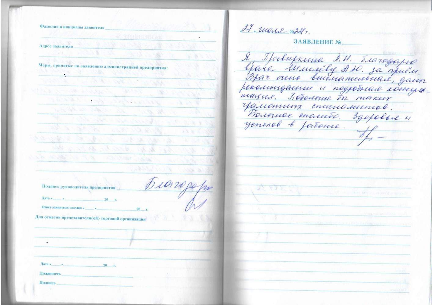 Я, Просвиркина Лидия Ивановна, благодарю врача Шмелеву А.Ю. за прием. Врач очень внимательный, даны рекомендации и подробная консультация. Побольше бы таких грамотных специалистов. Большое спасибо. Здоровья и успехов в работе. Просвиркина Л.И.
