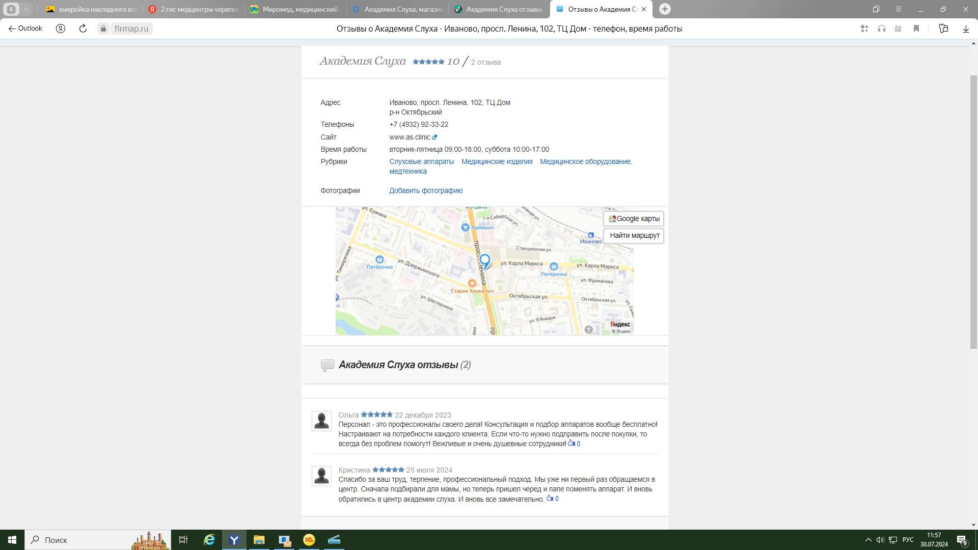 Были на приеме 11 июля, подбирали слуховой аппарат для мамы Елисеевоой Н.С., остались очень довольны!