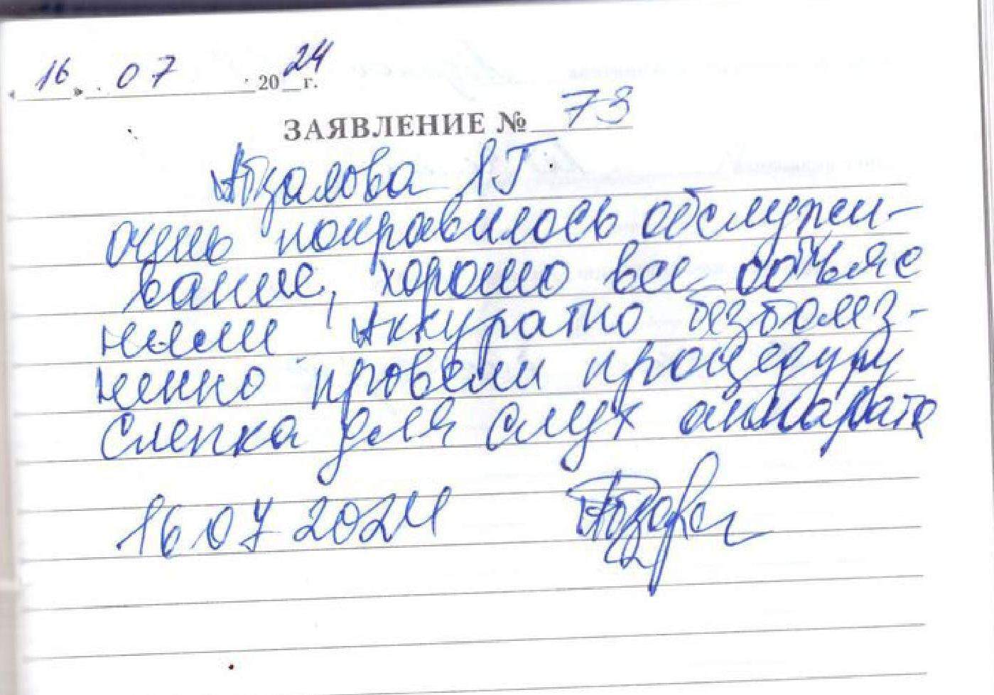 Очень понравилось обслуживание, хорошо все объяснили! Аккуратно безболезненно провели процедуру слепка для слух аппарата