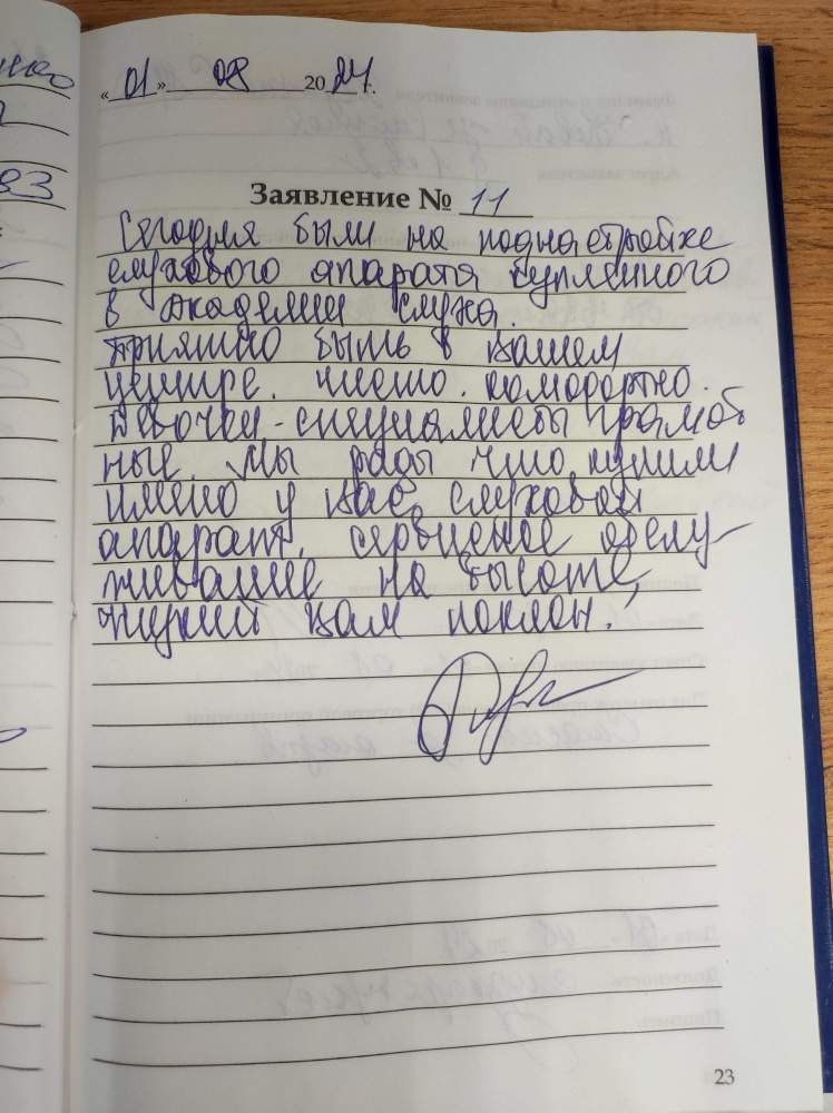 Сегодня были на поднастройке слухового аппарата купленного в Академии слуха. Приятно быть в вашем центре. Чисто. Комфортно. Девочки - специалисты грамотные. Мы рады что купили именно у вас слуховой аппарат. Сервисное обслуживание на высоте, низкий вам поклон.