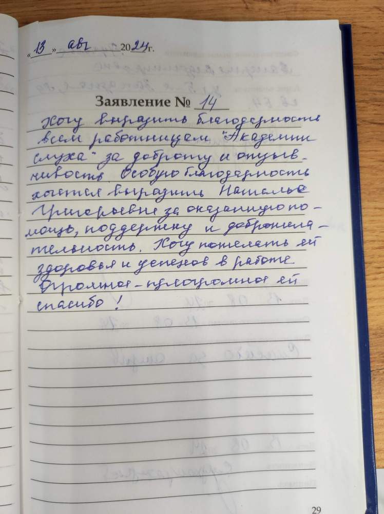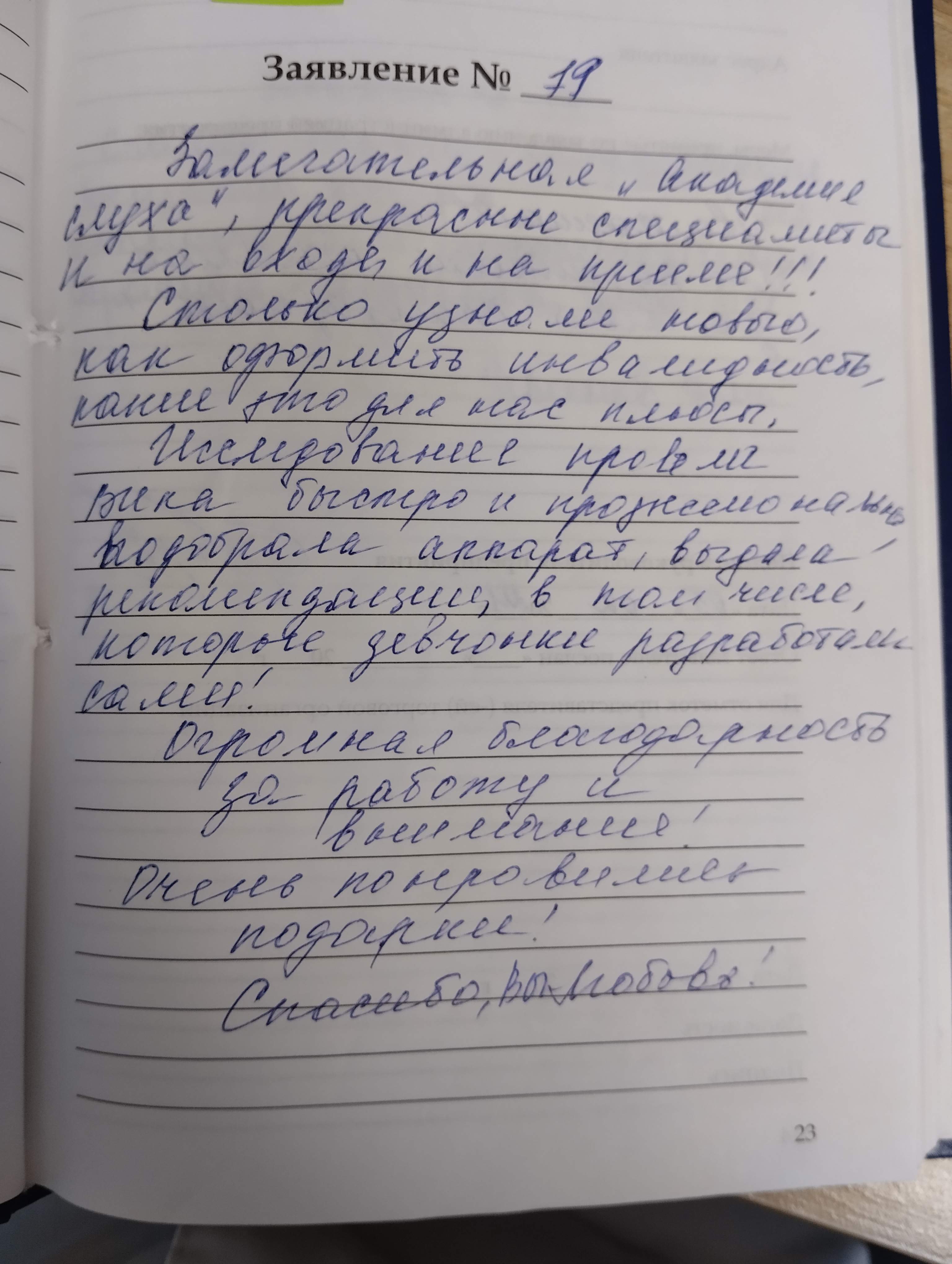 Хочу выразить благодарность всем работницам "Академии слуха" за доброту и отзывчивость. Особую благодарность хочется выразить Наталье Григорьевне за оказанную помощь, поддержку, доброжелательность. Хочу пожелать ей здоровья и успехов в работе. Огромное - преогромное ей спасибо!