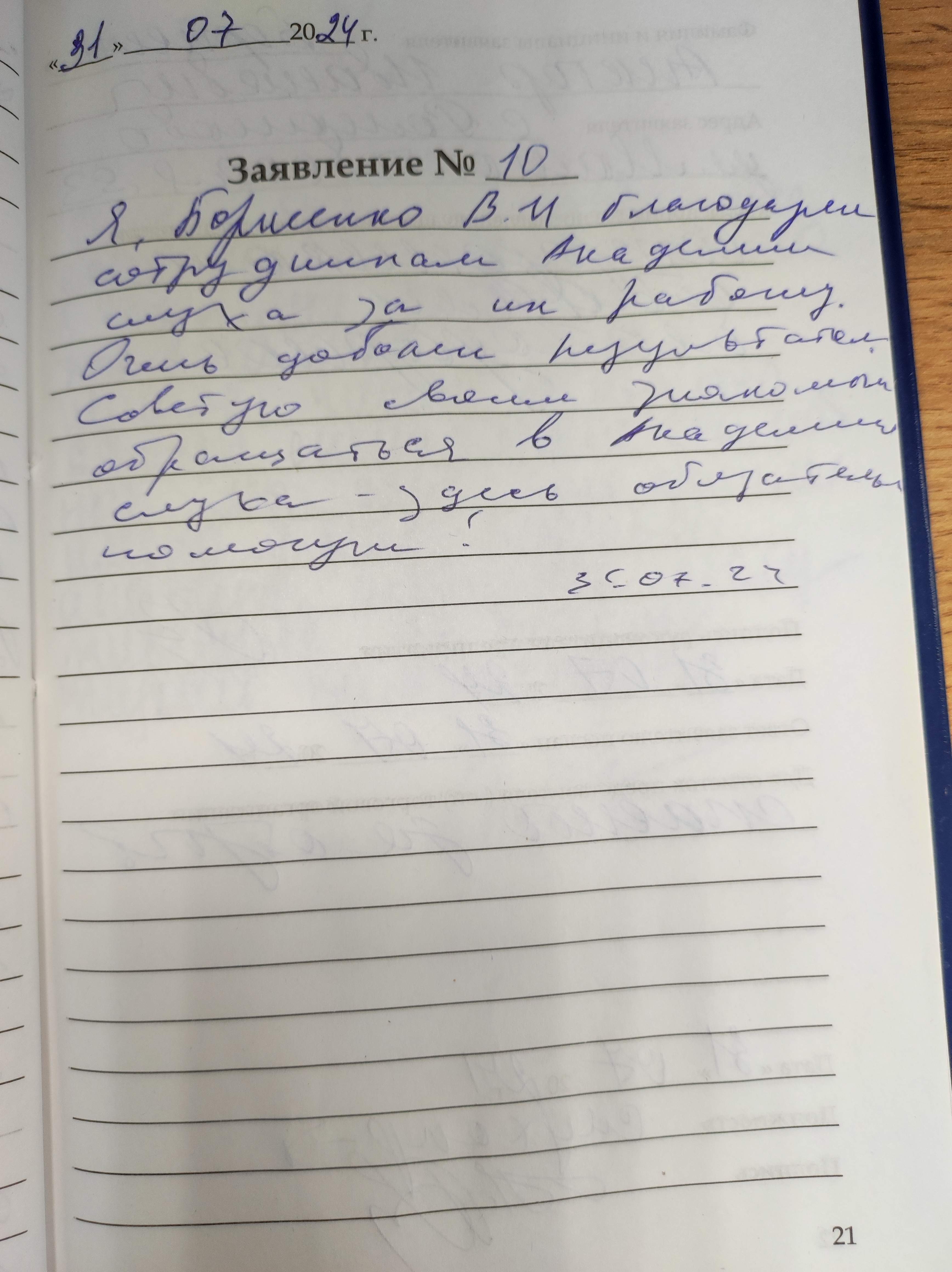 Я, Борисенко В.И. благодарен сотрудникам Академии слуха за их работу. Очень доволен результатом. Советую своим знакомым обращаться в Академию слуха - здесь обязательно помогут!