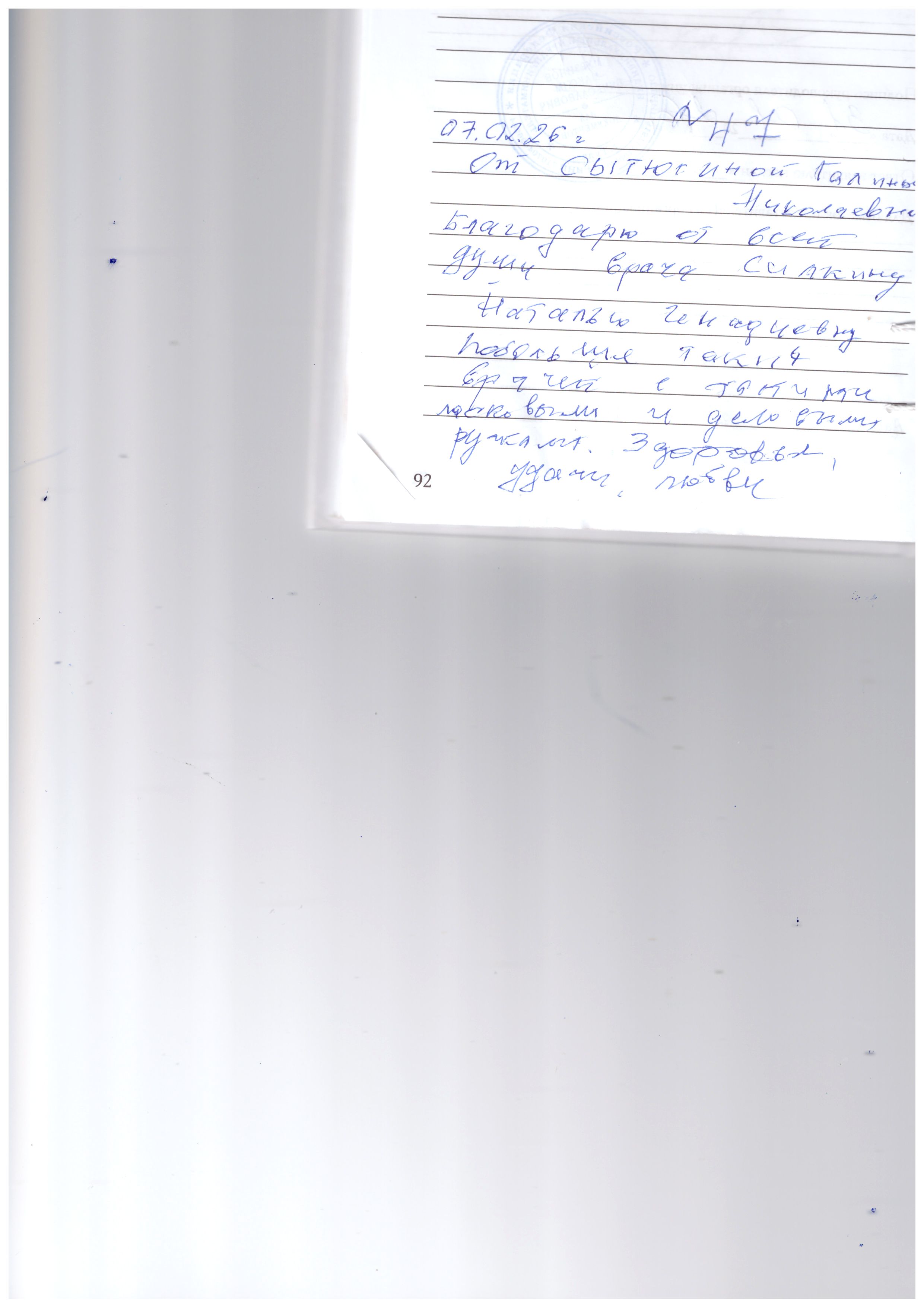Спасибо за внимательное и нужное отношение. Приятная беседа и хочется рассказать о вас другим, вы делаете нужные для людей вещи, нет очередей, записей на приём, своевременное посещение поможет многим.