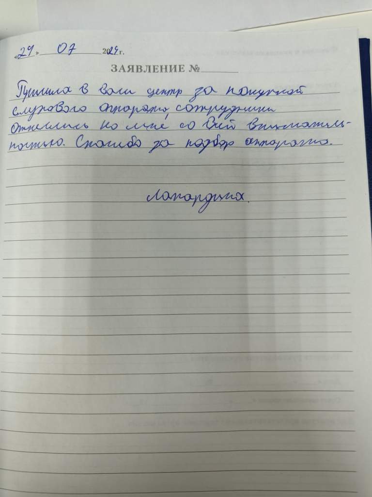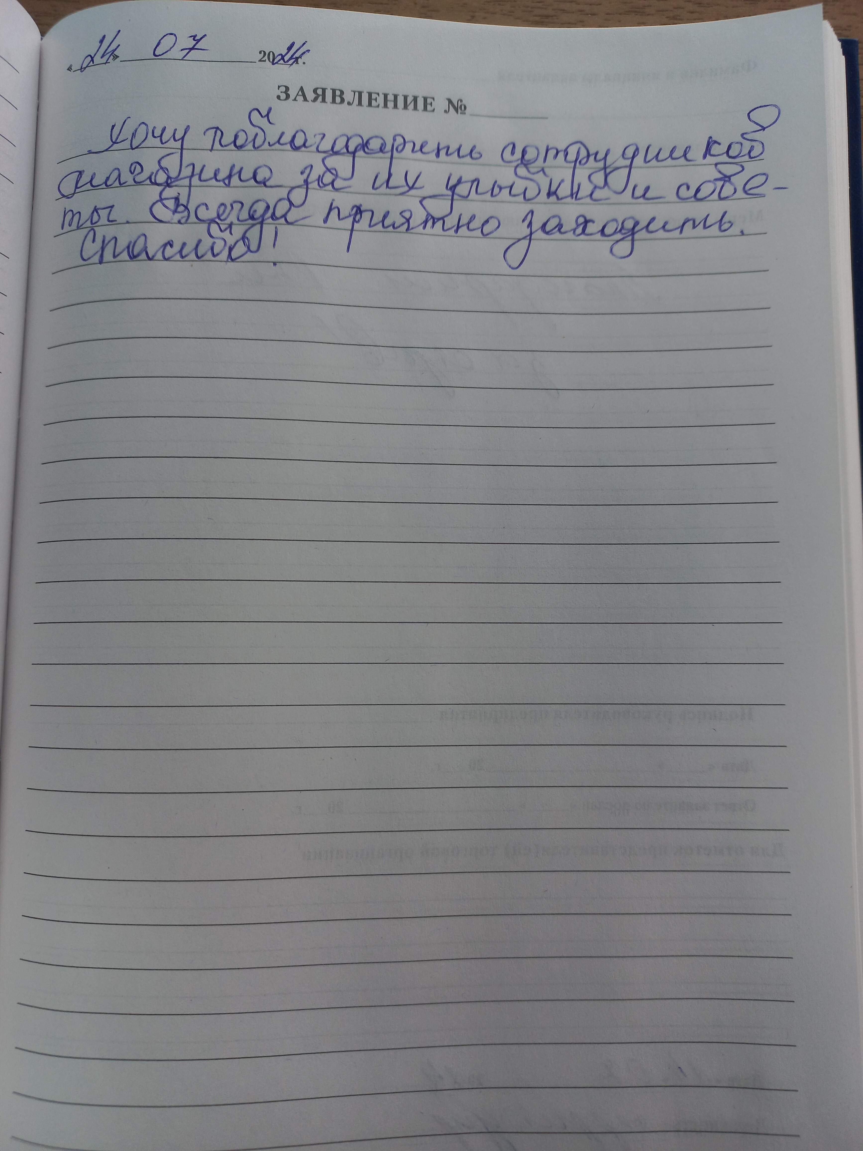 Хочу поблагодарить сотрудников магазина за их улыбки и советы. Всегда приятно заходить. Спасибо!