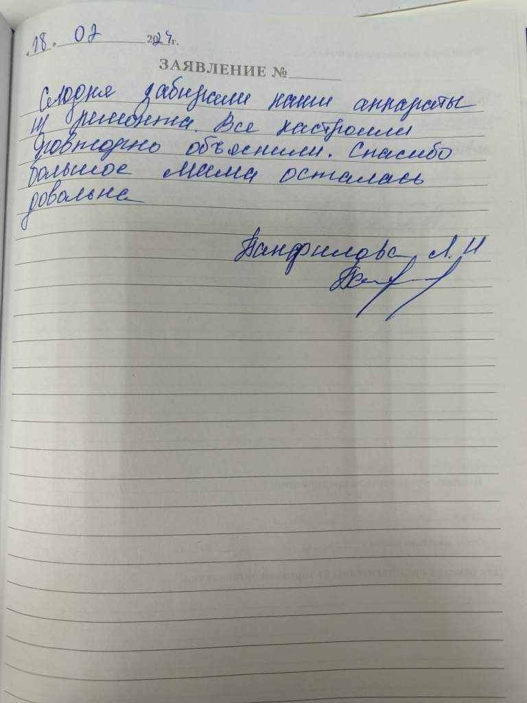 Сегодня забирали наши аппараты из ремонта. Все настроили повторно объяснили. Спасибо большое мама осталась довольна.
