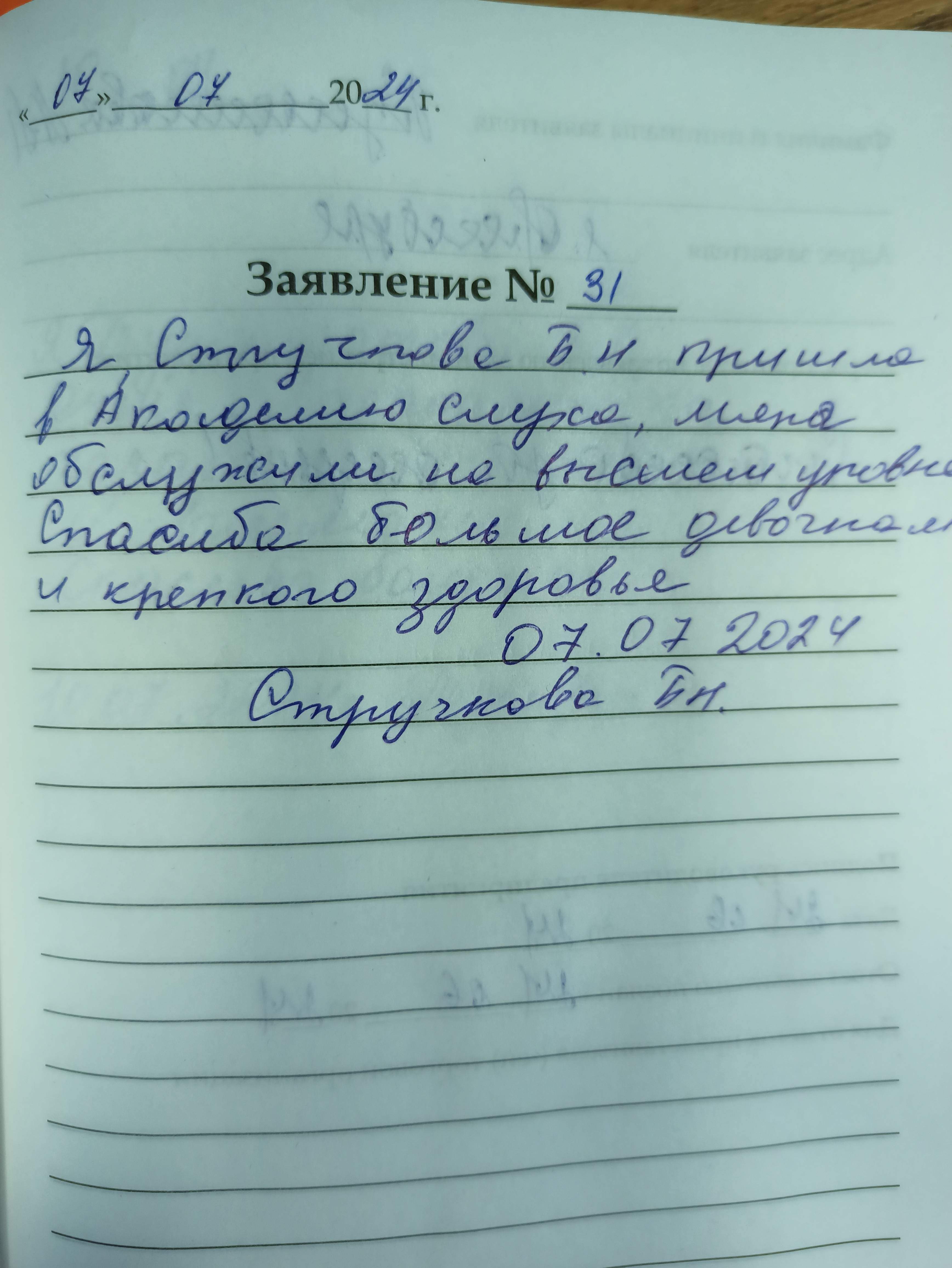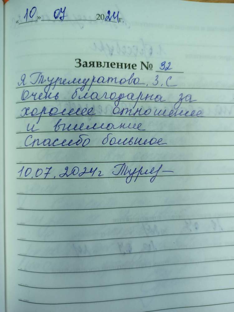 Я, Туремуратова З.С., очень благодарна за хорошее отношение и внимание. спасибо большое. 10.07.2024