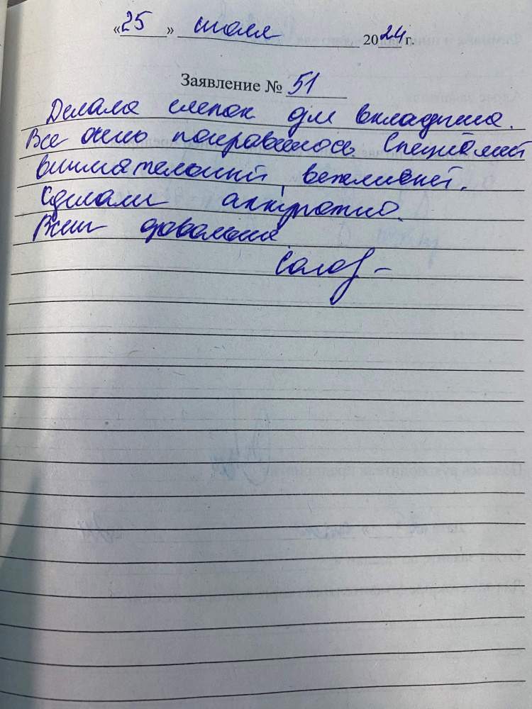 Я, Туремуратова З.С., очень благодарна за хорошее отношение и внимание. спасибо большое. 10.07.2024