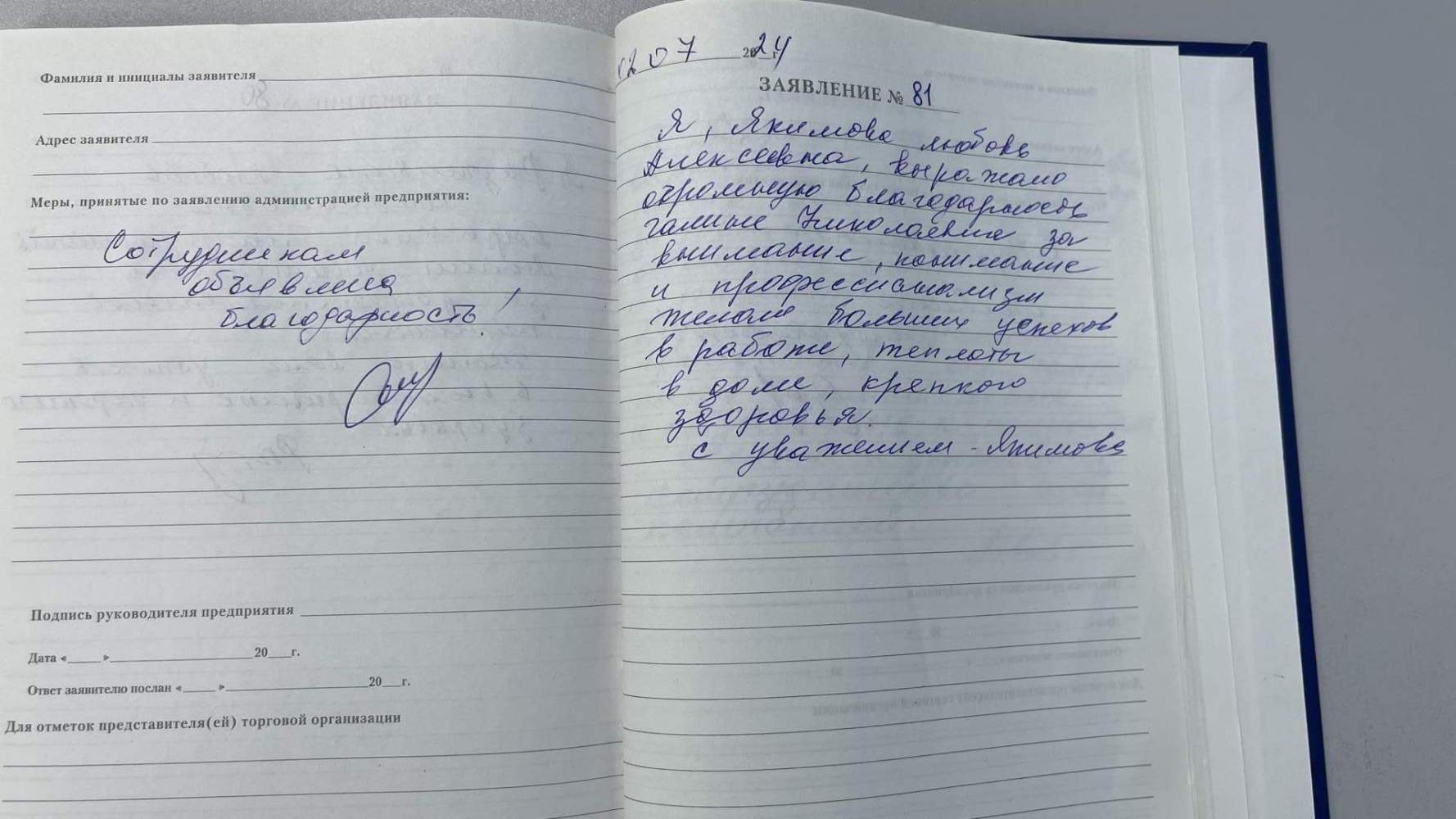 Я, Тюрина А.И., выражаю большую благодарность за внимательное отношение к клиентам, а именно ко мне. Все было на высшем уровне.