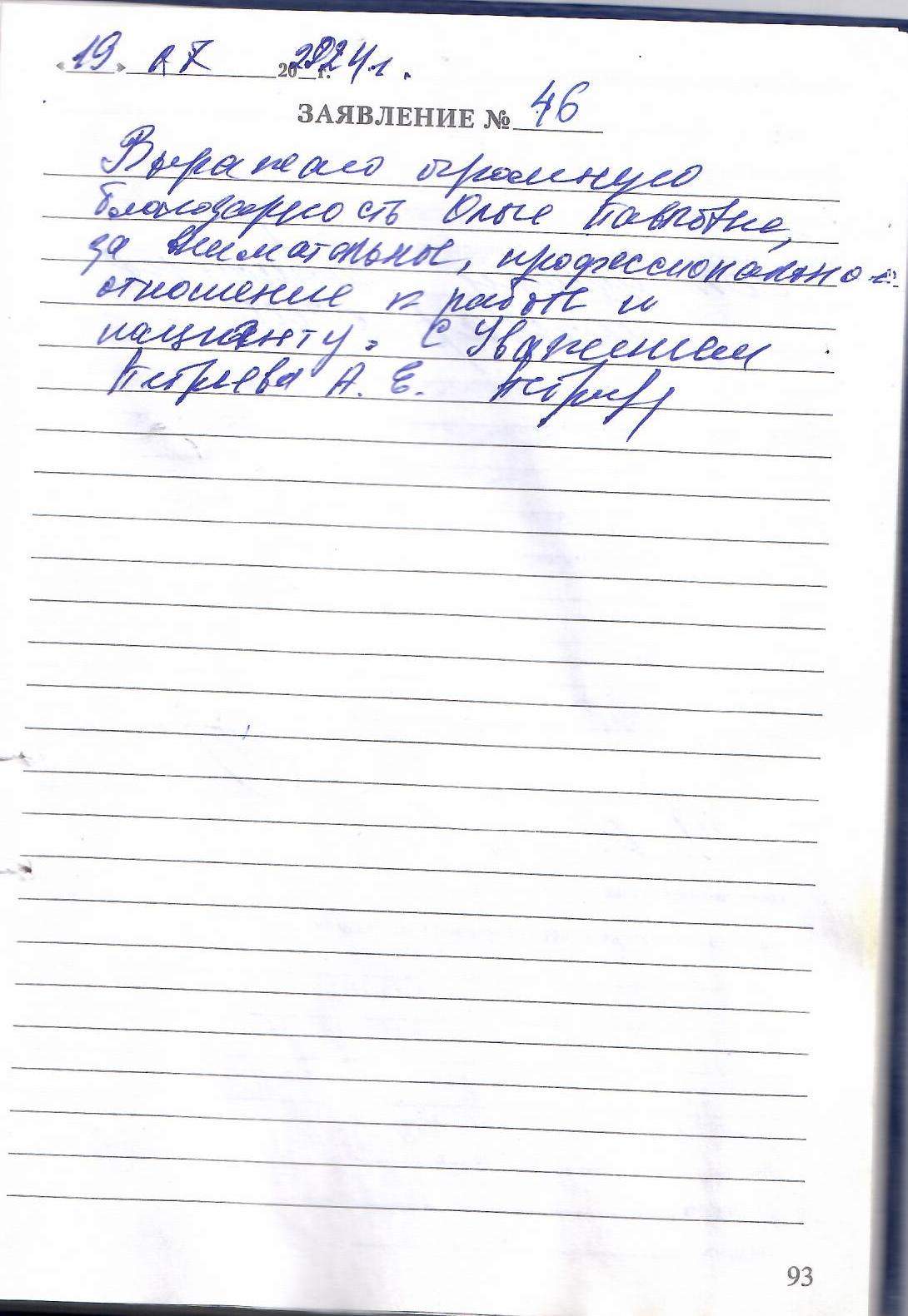 Выражаю огромную благодарность Ольге Павловне, за внимательное профессиональное отношение к работе и пациенту. С уважением, Петреева А.Е.