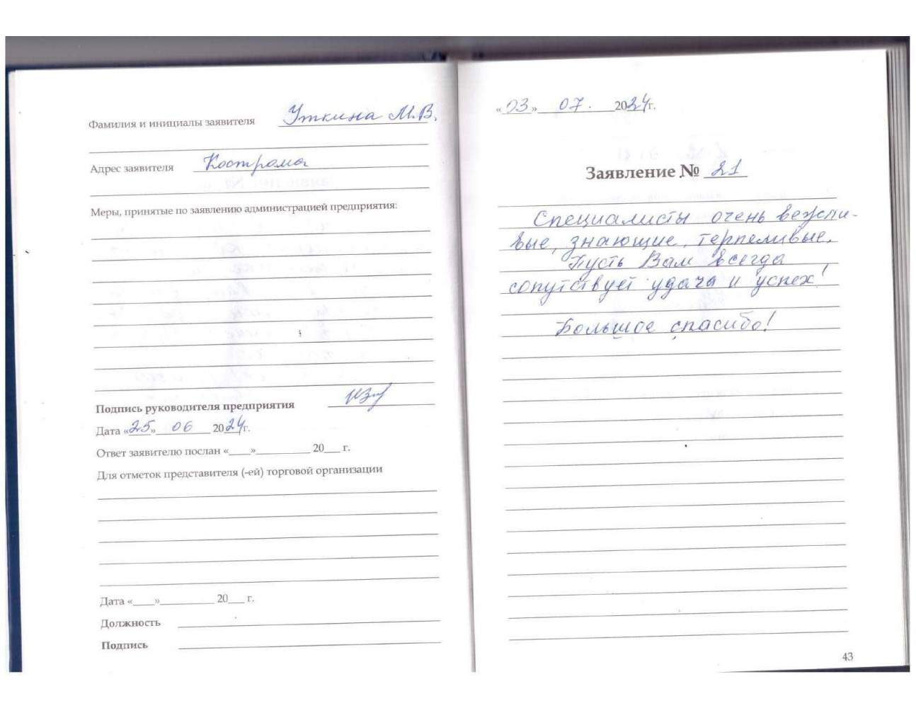 От всего сердца хочу поблагодарить сотрудника Александру Альбертовну за чуткое отношение и помощь мне Журавлевой СГ. Неоднократно мне была оказана помощь в улучшении слуха. Прошу руководителя премировать данного сотрудника материально!