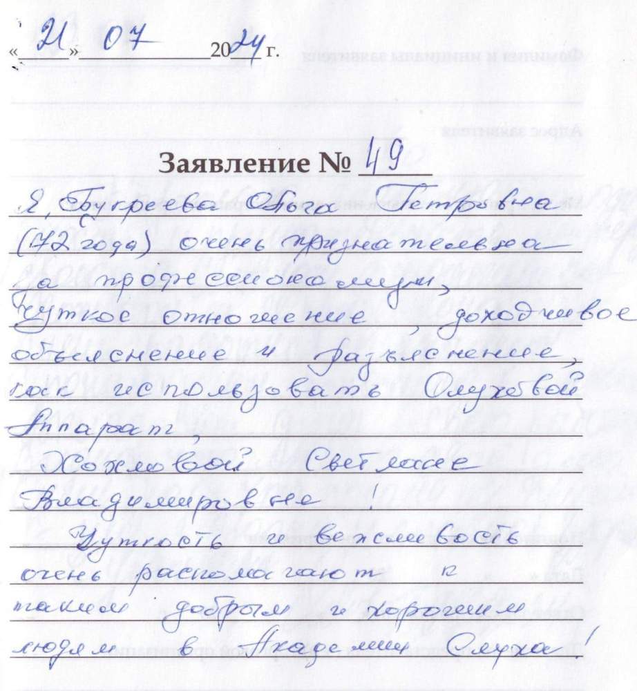 Я,Букреева Ольга Петровна (72 )года очень признательна за профессионализм,чуткое отношение,доходчивое объяснение ,как использовать слуховой аппарат Хохловой Светлане Владимировне! Чуткость и вежливость очень располагают к таким добрым и хорошим людям в Академии слуха!