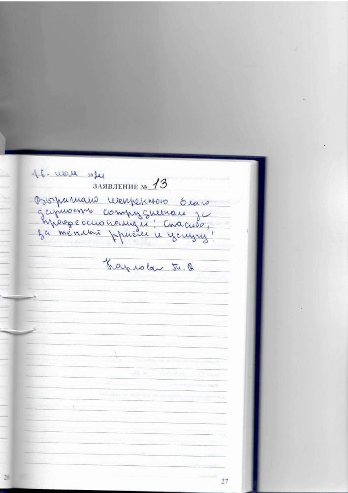 Выражаю искреннюю благодарность сотрудникам за профессионализм! Спасибо за тёплый приём и услугу!