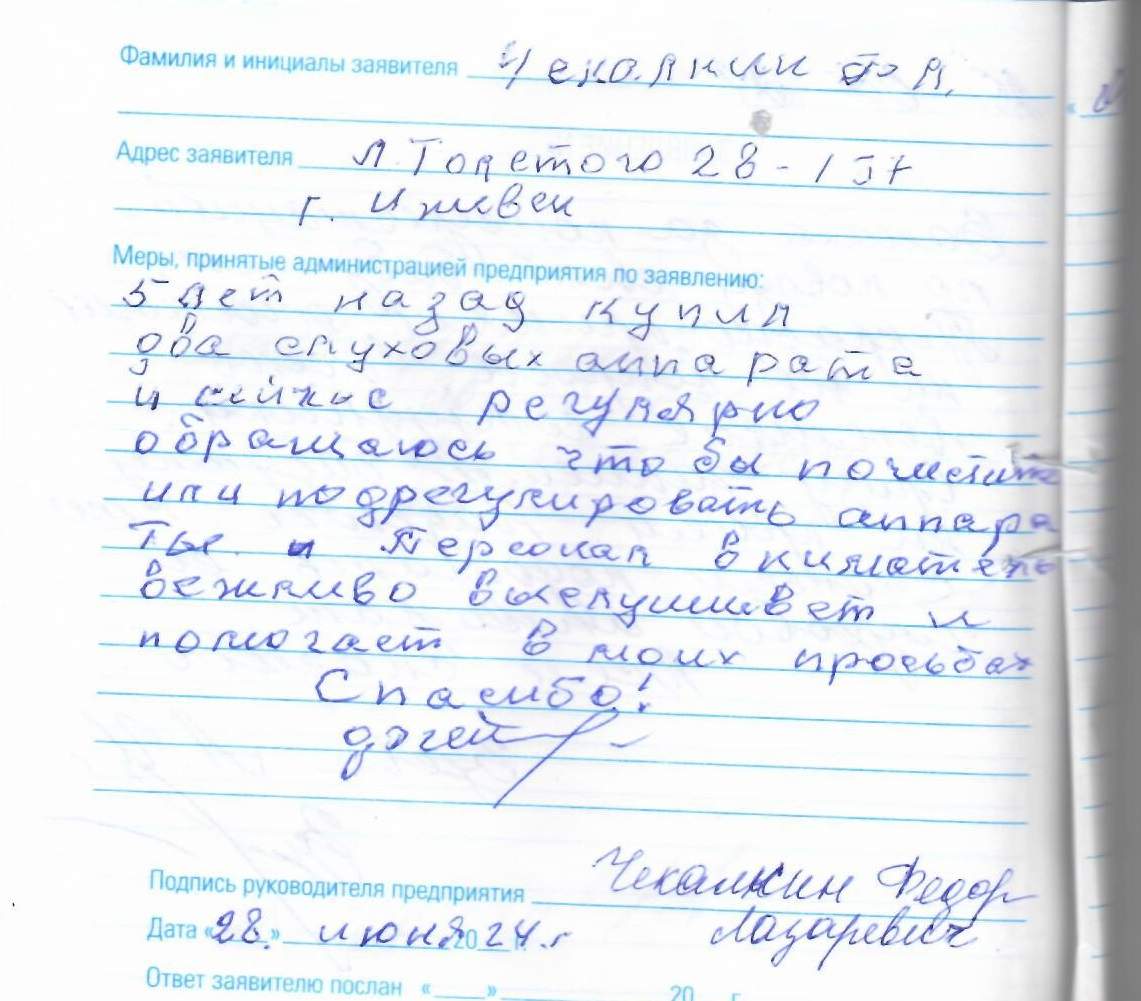 5 лет назад купил два слуховых аппарата и сейчас регулярно обращаюсь, чтобы почистить или отрегулировать аппараты. Персонал внимательно вежливо выслушивает и помогает в моих просьбах. Спасибо!