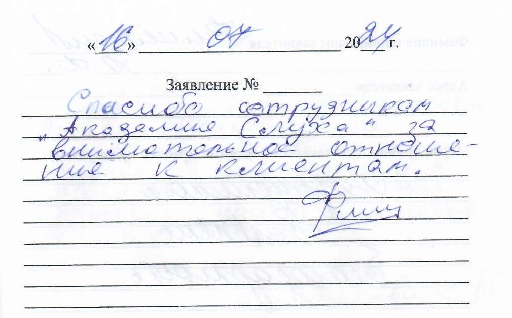 Хочется поблагодарить работников центра «Академия слуха» за внимательное , чуткое отношение к клиентам. Желаю успехов в очень нужной работе для слабослышащих людей. Большое спасибо!