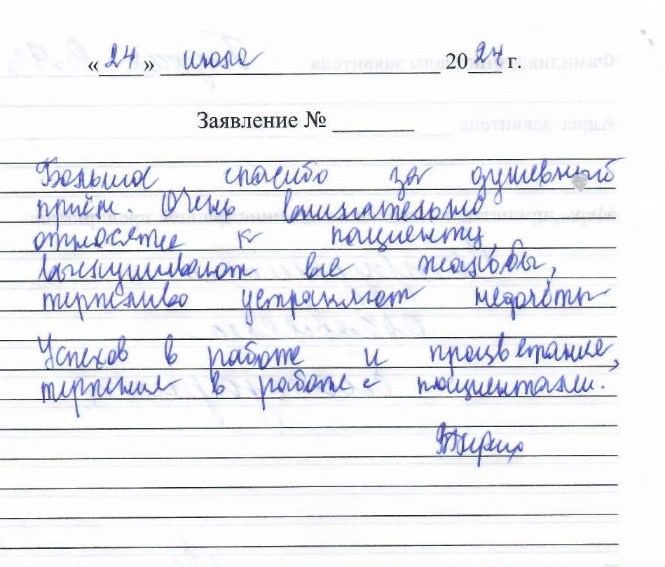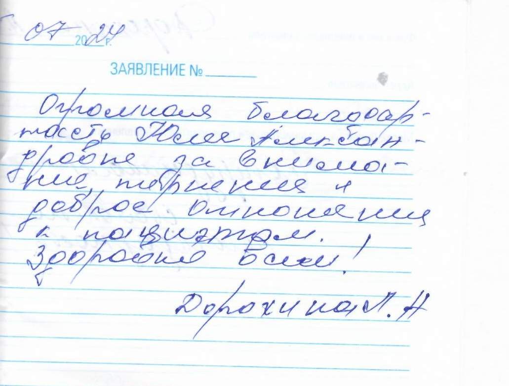 Огромная благодарность Юлии Александровне за внимание, терпение и доброе отношение к пациентам. Здоровья всем!