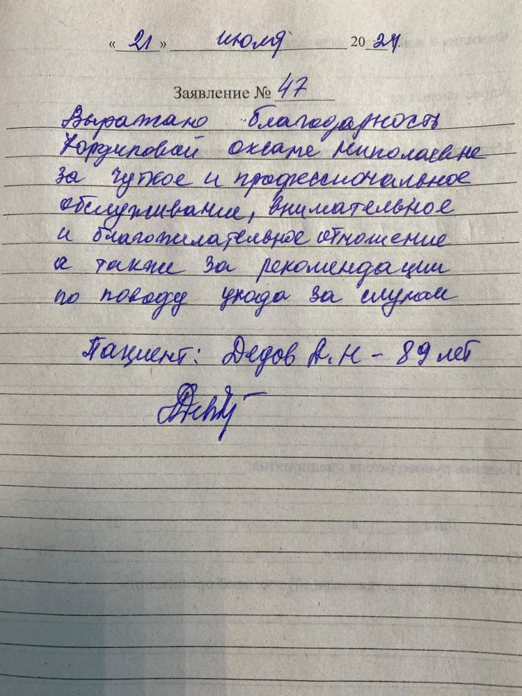 Выражаю благодарность Хордиковой Оксане Николаевне за чуткое и профессиональное обслуживание, внимательное и благожелательное отношение, а также за рекомендации по поводу ухода за слухом.