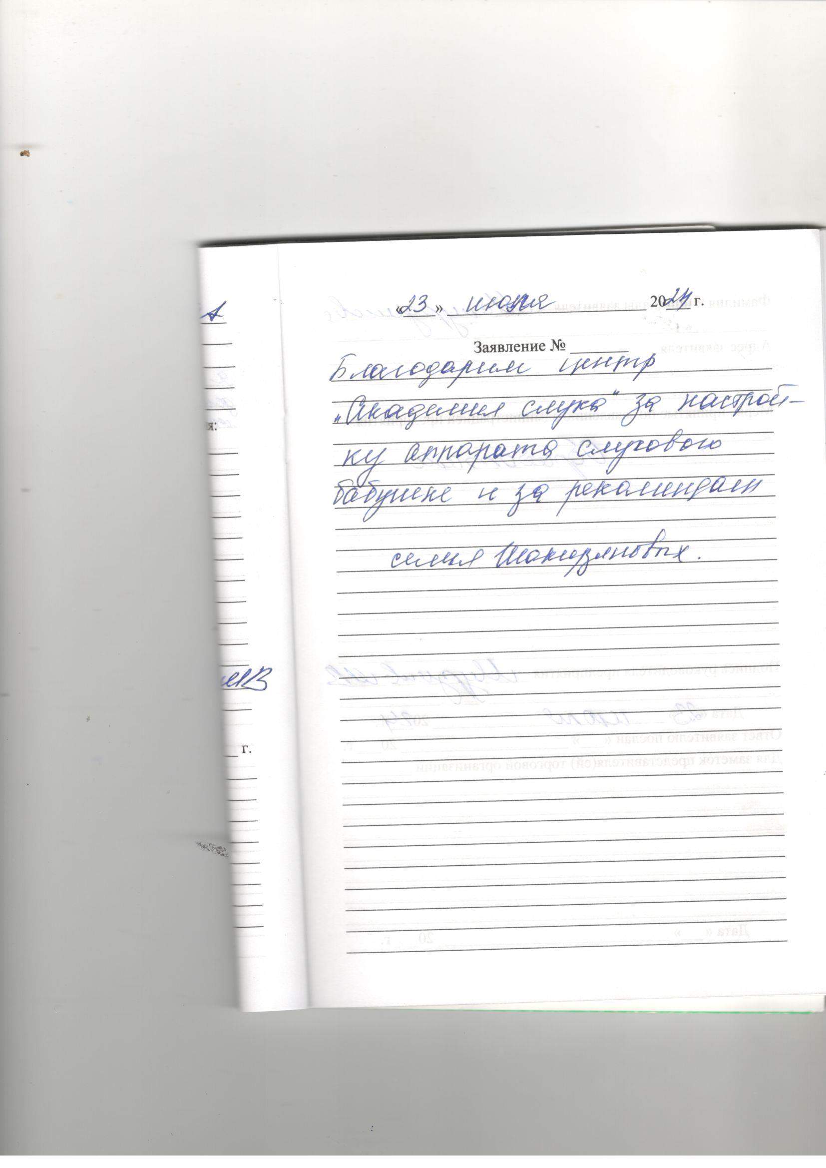 Благодарим центр "Академия слуха" за настройку аппарата слухового бабушке и за рекомендации. Семья Шакирзяновых
