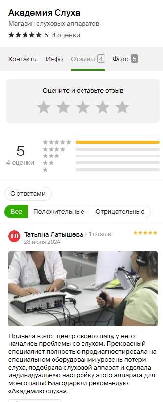 Давно обслуживаюсь в Академии слуха. Проверяю слух и настраиваю слуховые аппараты все четко слышно. Очень довольна ,что в свое время обратилась сюда за слуховым аппаратом. Спасибо большое ,процветания и успехов