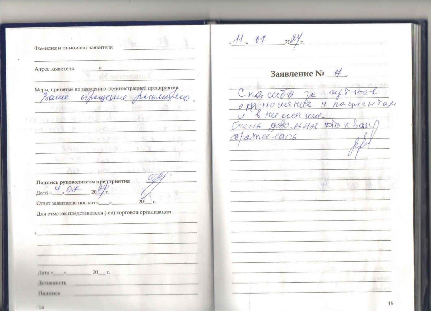 Благодарна за теплое отношение и обслуживание .