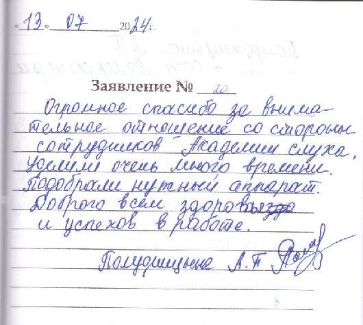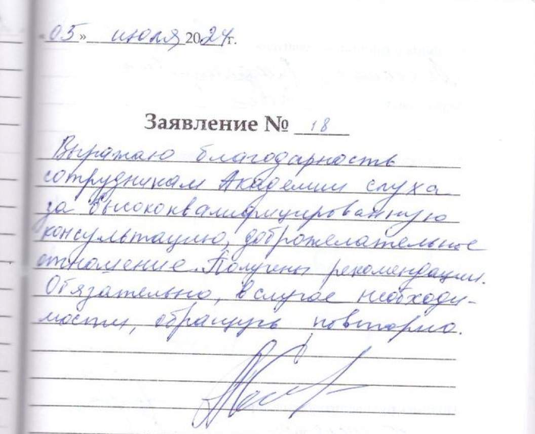 Огромное спасибо за внимательное отношение со стороны сотрудников Академии слуха. Уделили очень много времени. Подобрали нужный аппарат. Доброго всем здоровья и успехов в работе.
