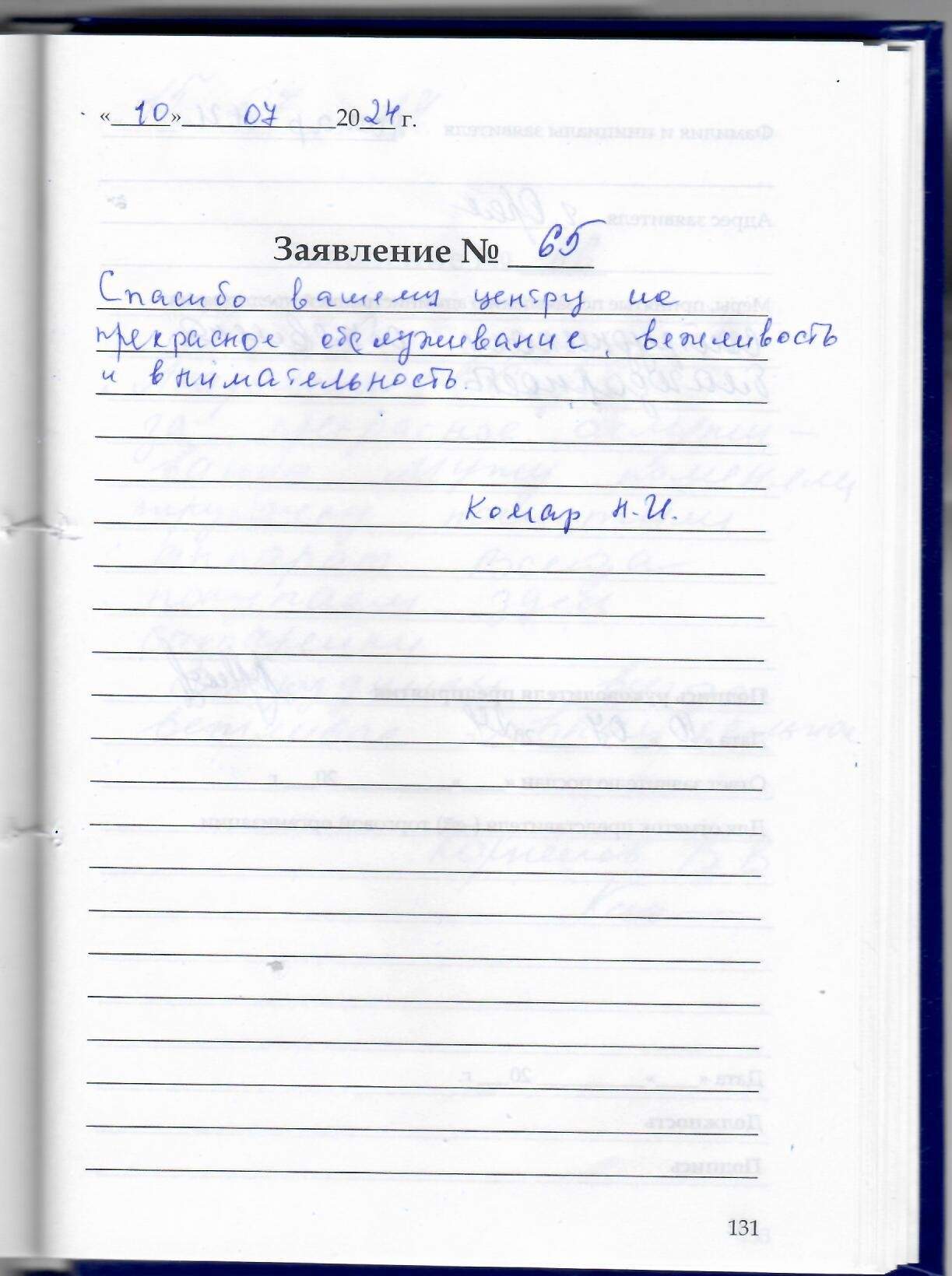 Спасибо вашему центру за прекрасное обслуживание ,вежливость и внимательность.