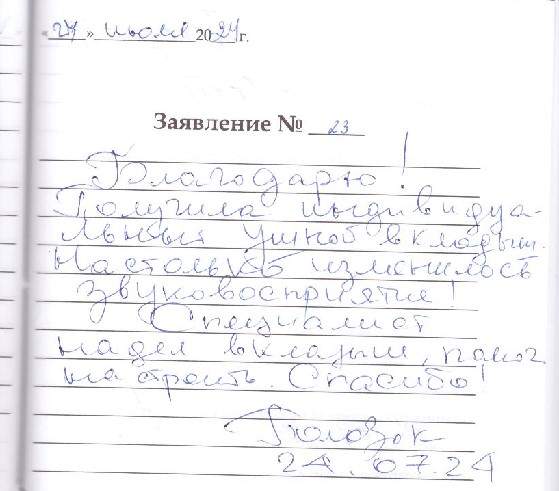 Благодарю! Получила индивидуальный ушной вкладыш. Настолько изменилось звуковосприятие! Специалист надел вкладыш, помог настроить. Спасибо!