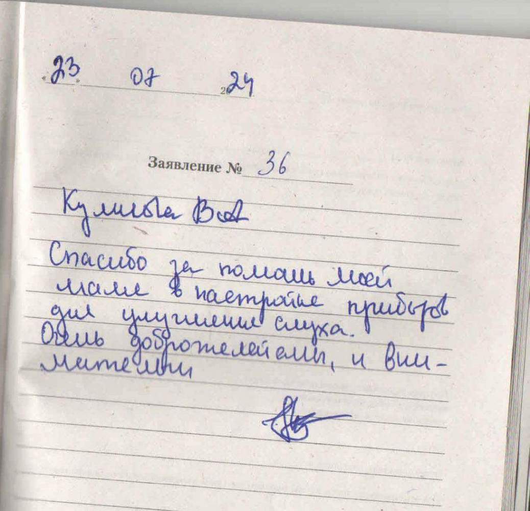 Получила слуховой аппарат бесплатно.Девочки добрые и профессионалы своего дела. Васильева В. П.