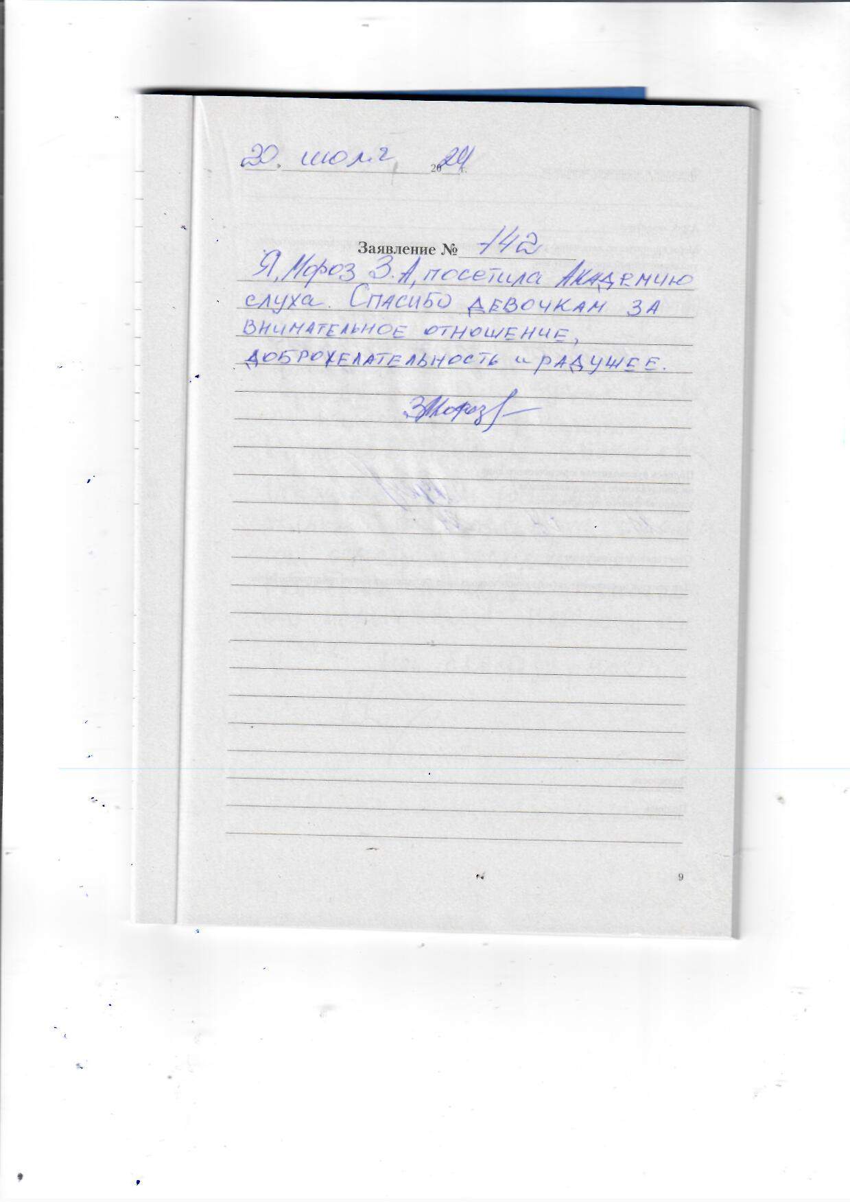 Я, Мороз З.А.. посетила Академию слуха. Спасибо девочкам за внимательное отношение, доброжелательность и радушие.