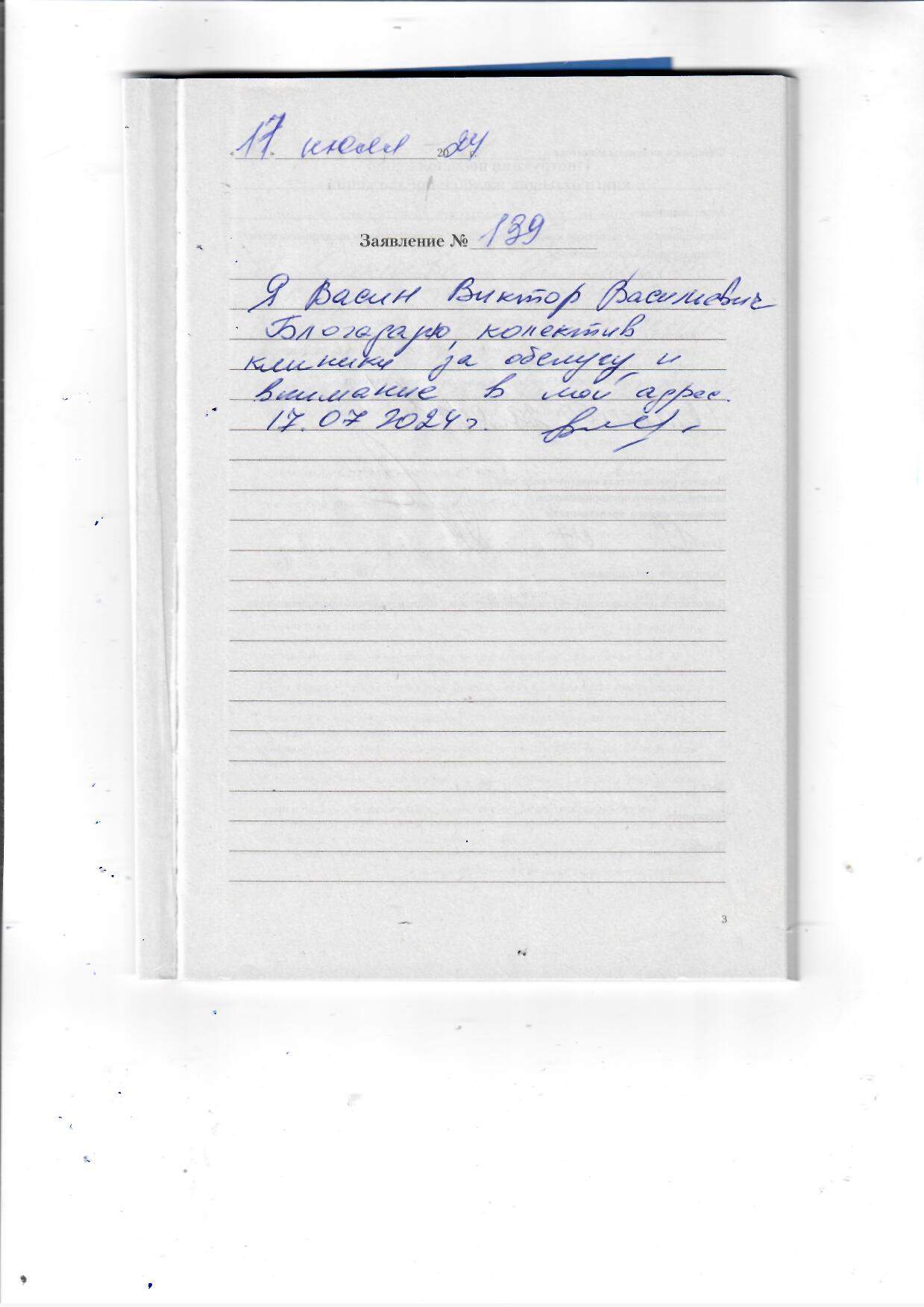 Я, Васин Виктор Васильевич, Благодарю коллектив клиники за обслугу и внимание в мой адрес.