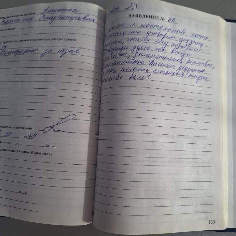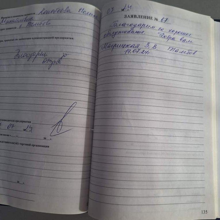 Благодарим за хорошее обслуживание. Добра вам. Магрицкая З.В. Тамбов 17.07.24