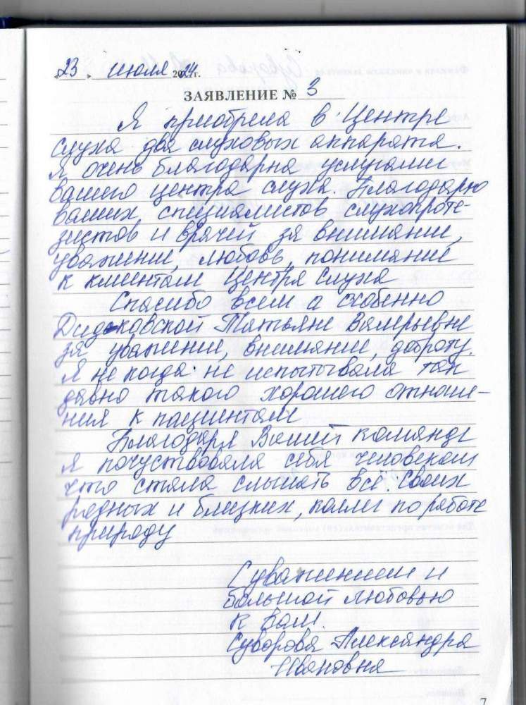 Выражаю благодарность коллективу Центра Слуха. Процветанию вашей компании
