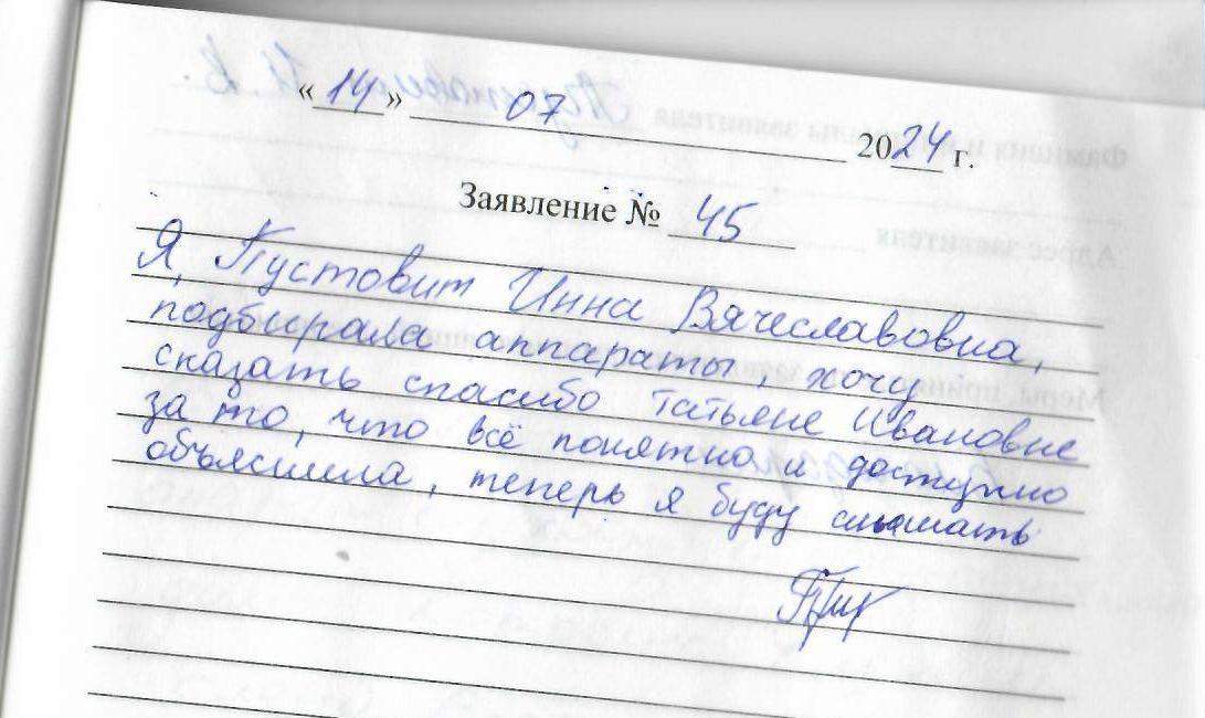 Благодаря Вашей команде я почувствовала себя человеком что стал слышать все. Своих родных и близких, коллег по работе, природу.
