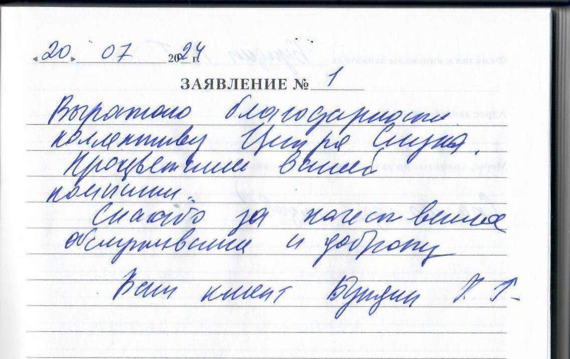 Выражаю искреннюю благодарность сотрудникам за профессионализм! Спасибо за тёплый приём и услугу!