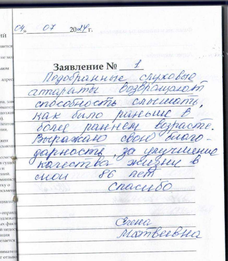 Подобранные слуховые аппараты возвращают способность слышать,как было в более раннем возрасте. Выражаю свою благодарность, за улучшение качества жизни, в мои 86 лет.