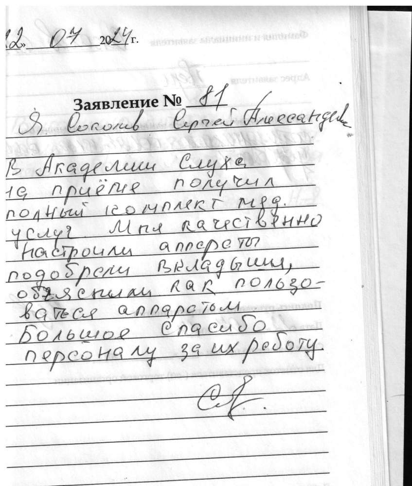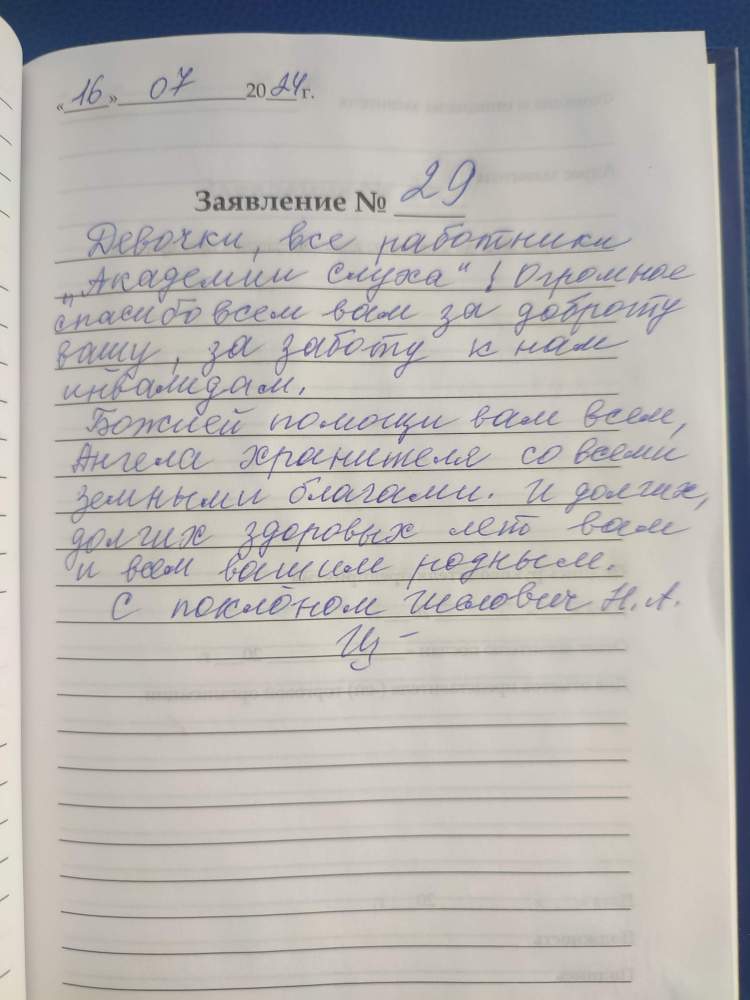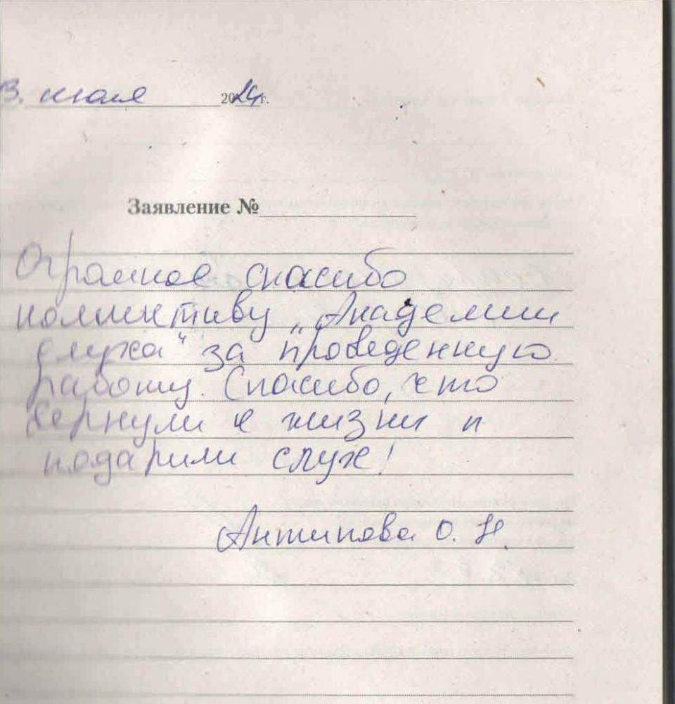 Огромное спасибо коллективу "Академии слуха" за проведенную работу. Спасибо, что вернули к жизни и подарили слух!