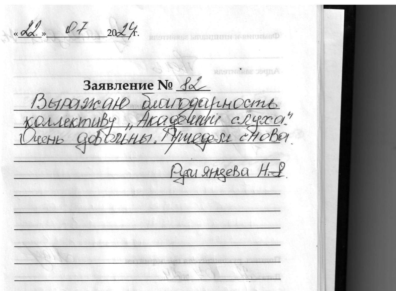 Выражаю благодарность коллективу «Академии слуха». Очень довольны. Приедем снова.