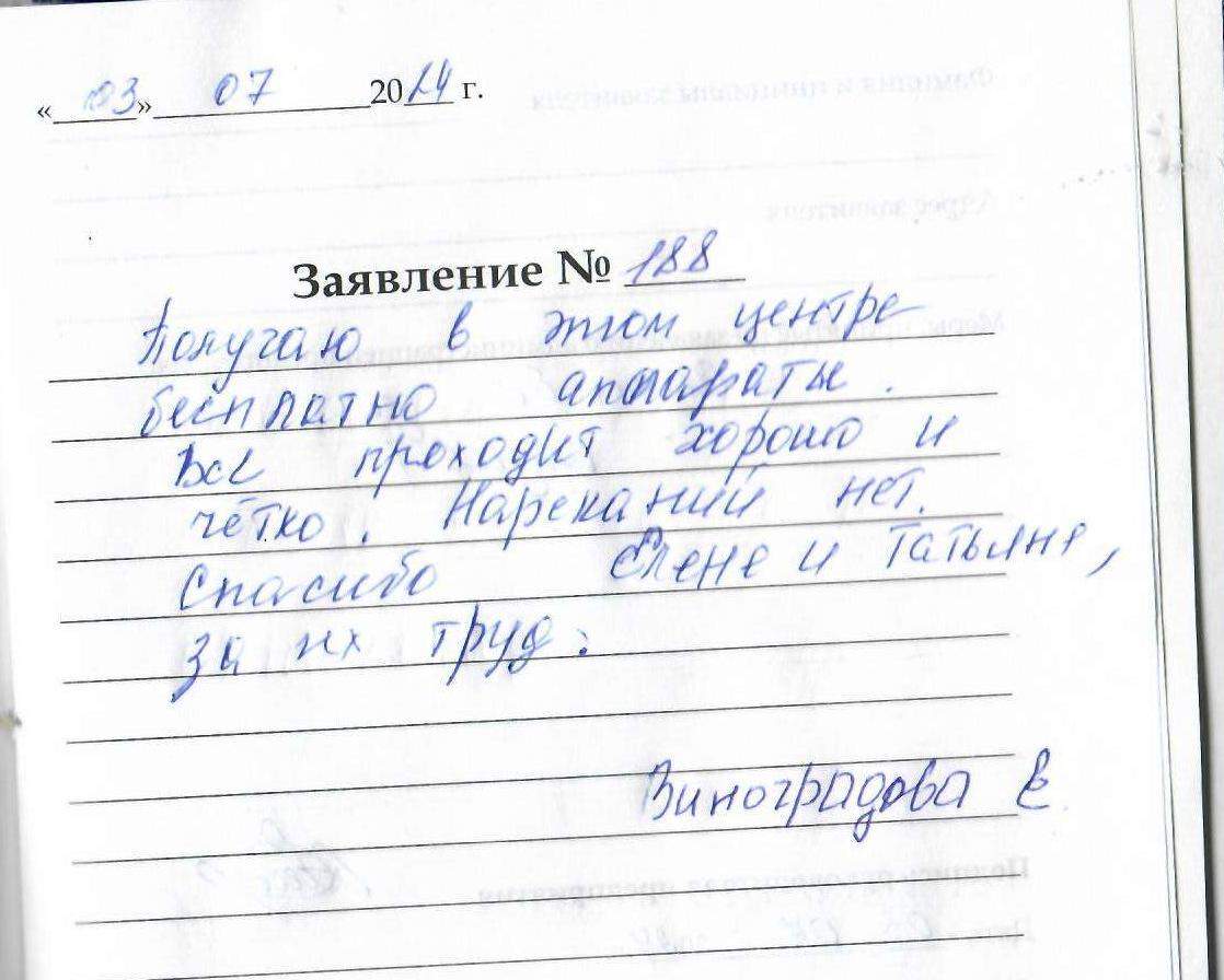 Получаю в этом центре бесплатно аппараты. Все проходит хорошо и чётко. Нареканий нет. Спасибо Елене и Татьяне, за их труд.
