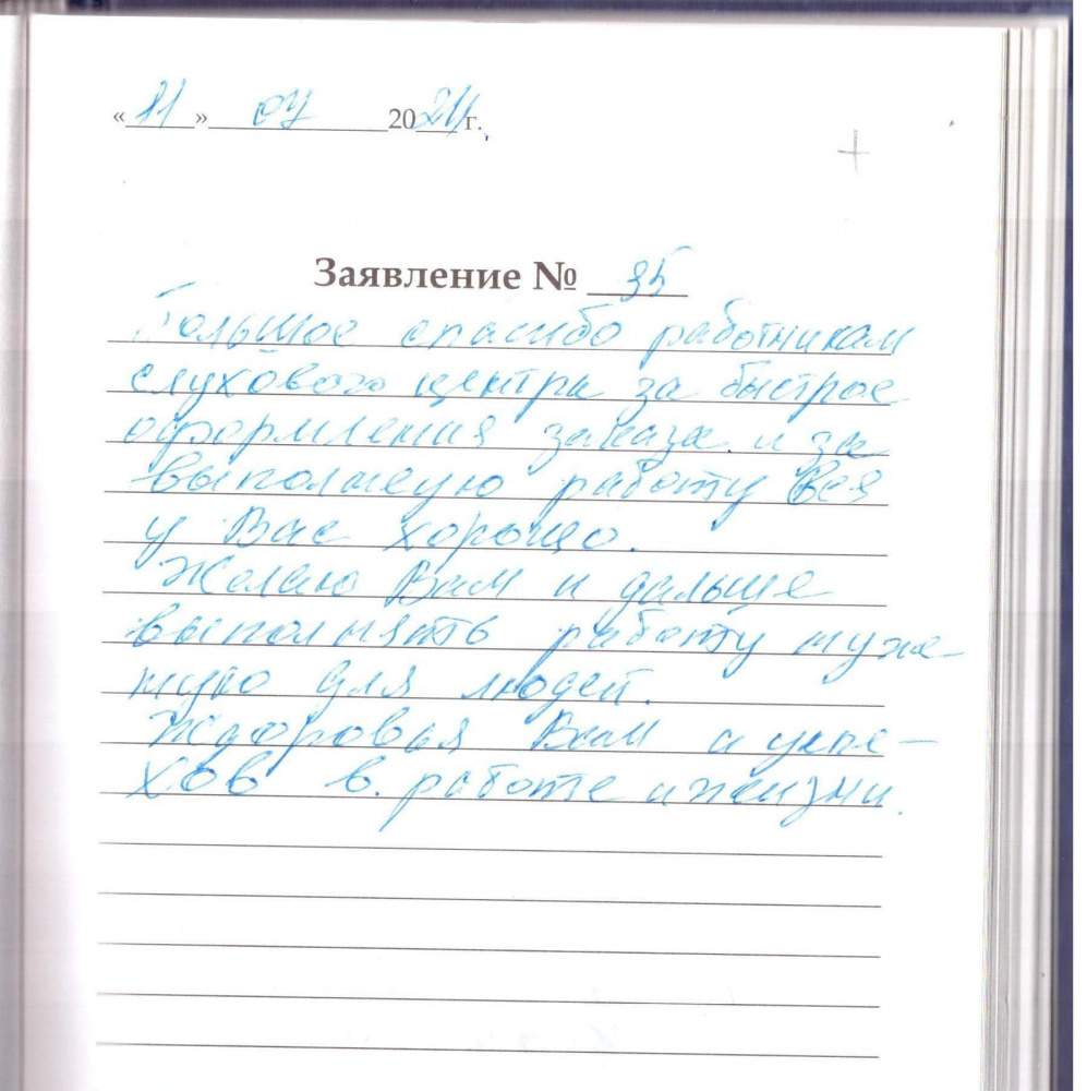 Большое спасибо работникам слухового центра за быстрое оформление заказа и за выполняемую работу все у Вас хорошо.