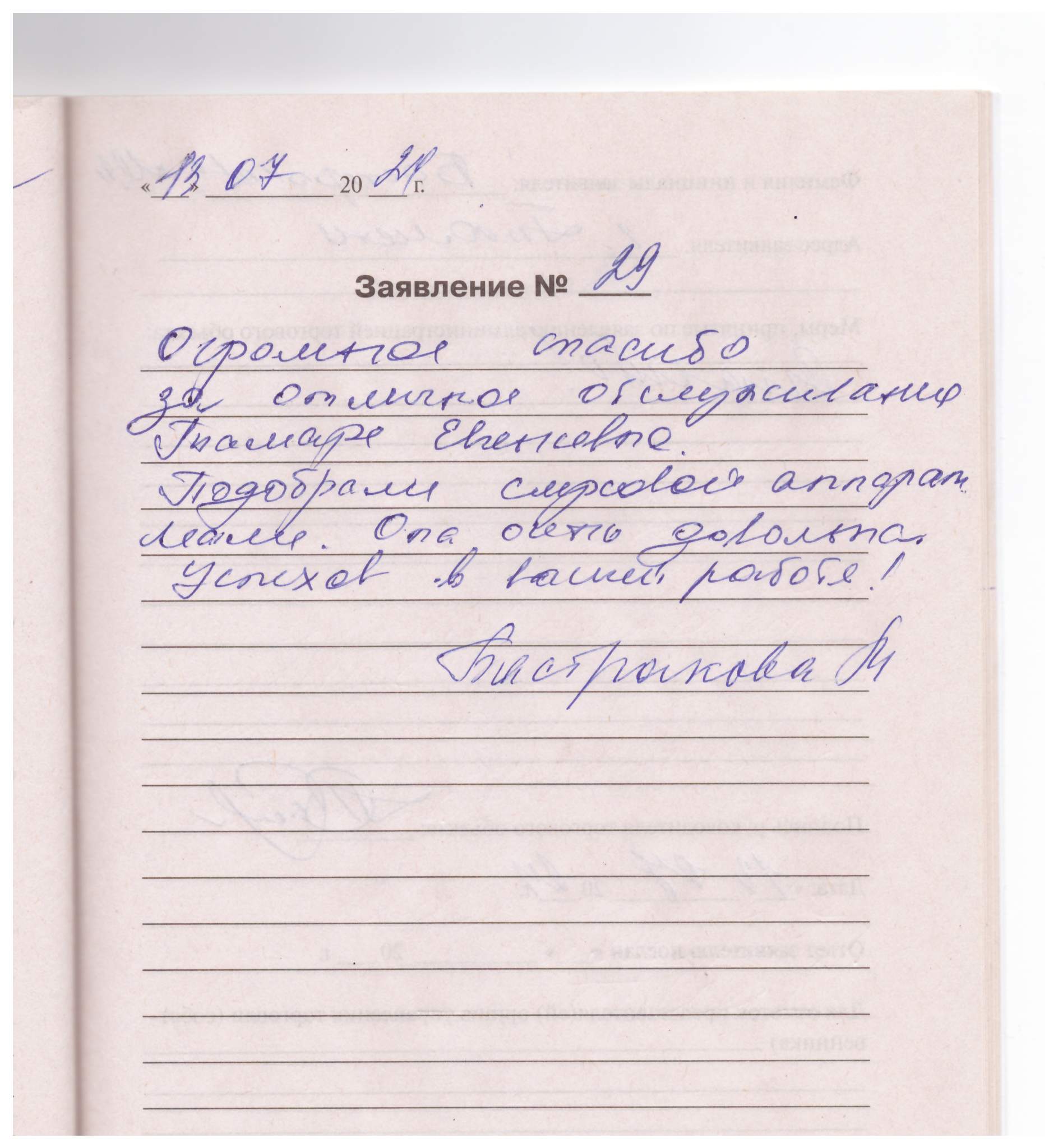 Большое спасибо за очень внимательное и сердечное обслуживание. Всем желаем большого, крепкого здоровья и хороших клиентов.