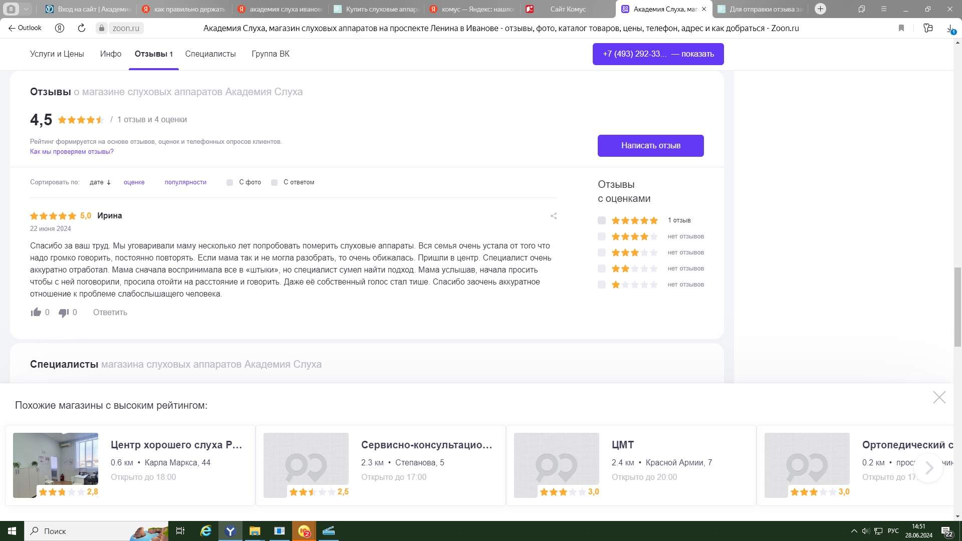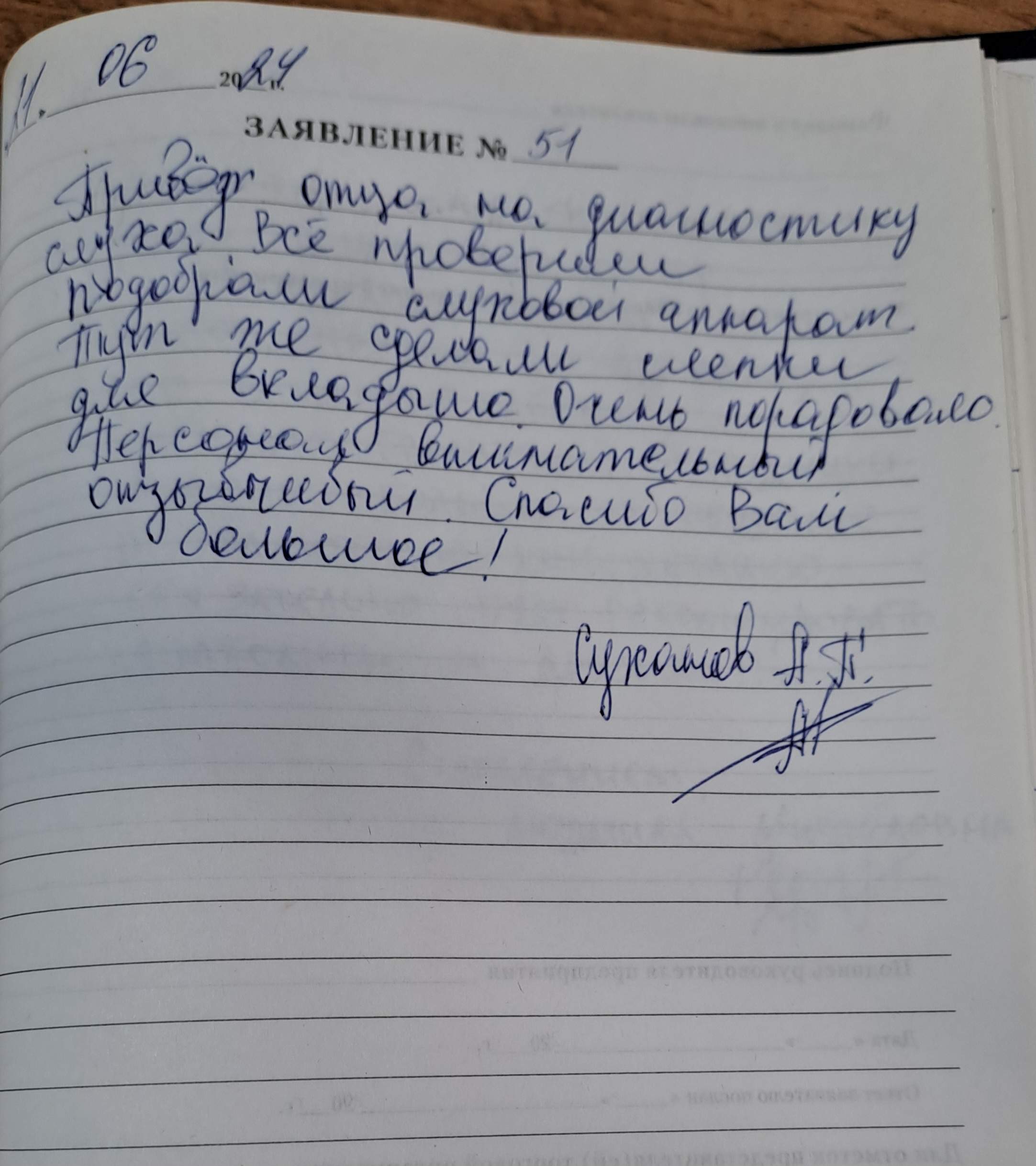 Я, Ковтун Николай Михайлович , был на приеме 21.06.24. Пригласили на настройку слухового аппарата. Все быстро и очень профессионально. Большое спасибо.