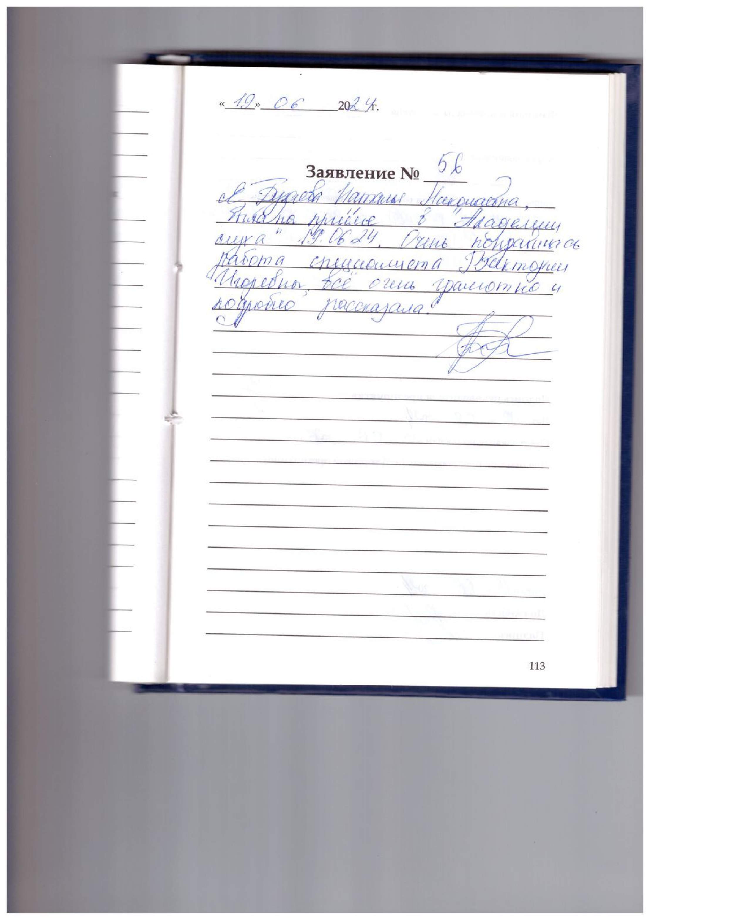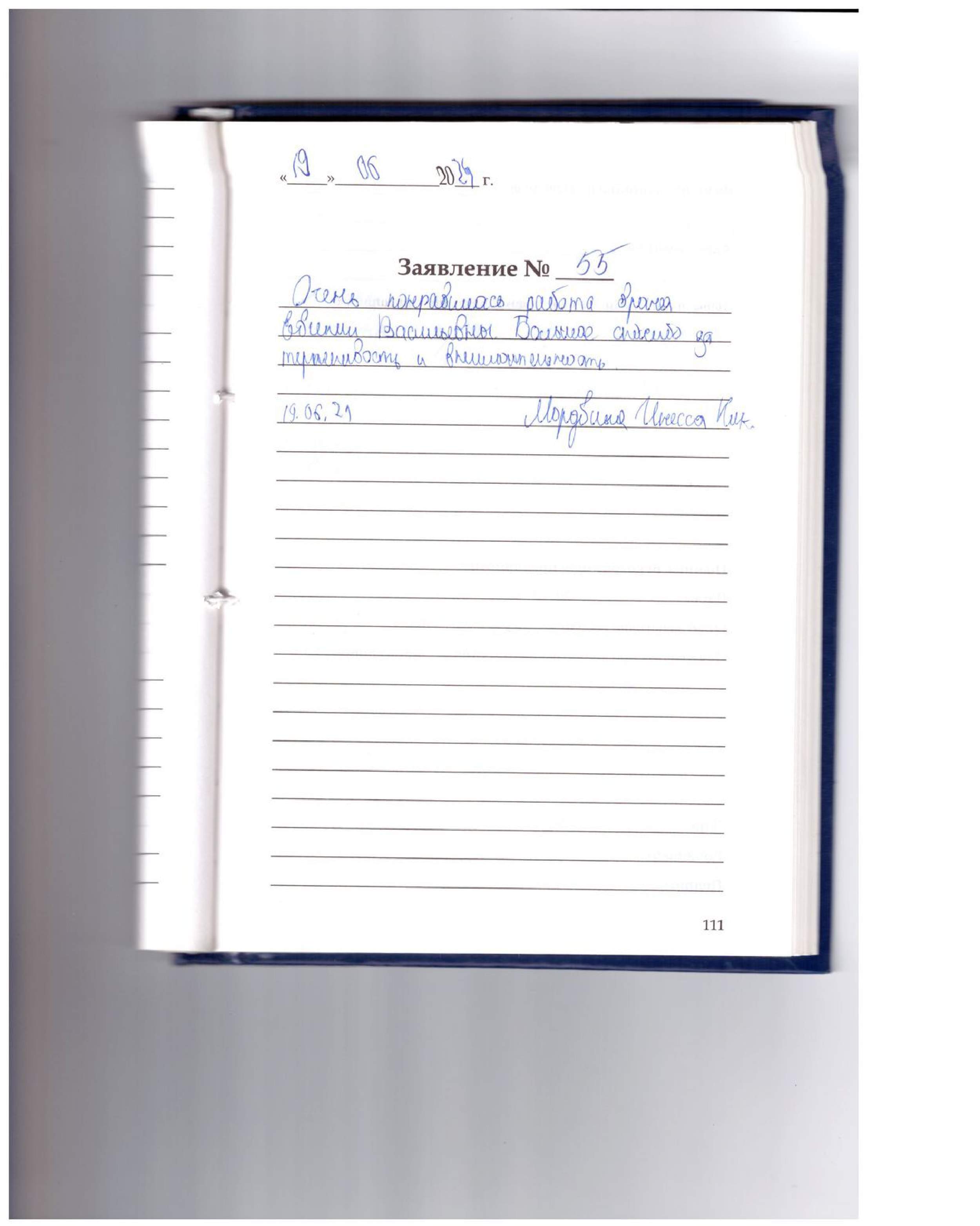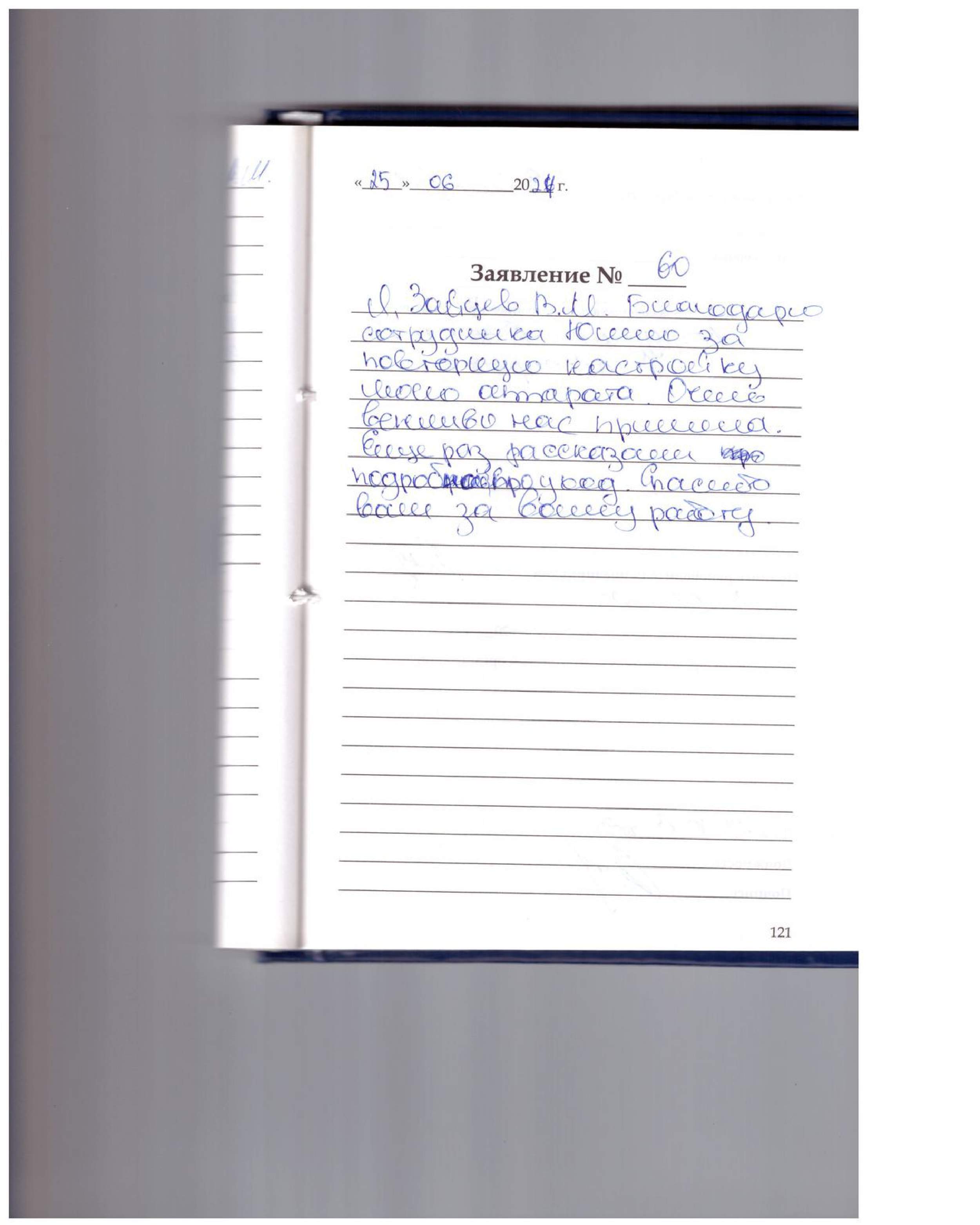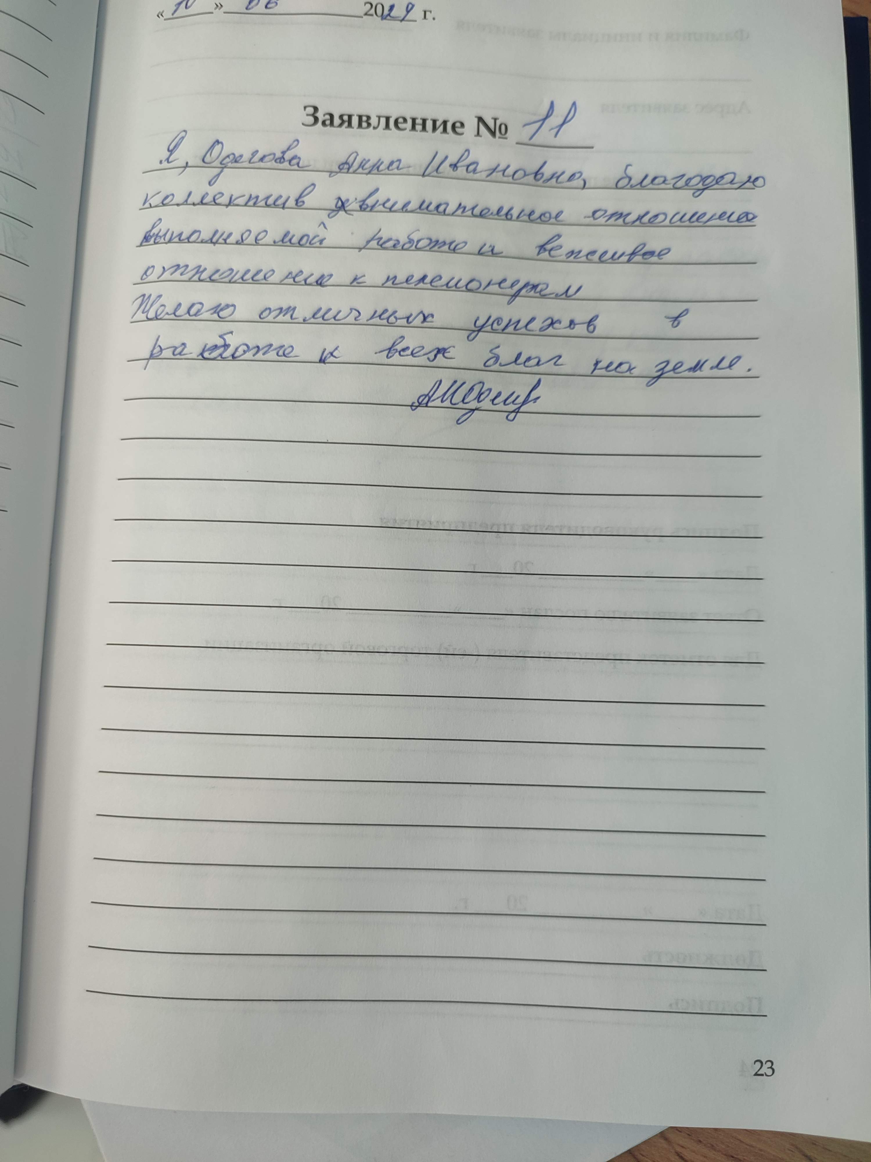 Я, Одегова Анна Ивановна, благодарю коллектив за внимательное отношение к выполняемой работе и вежливое отношение к пенсионерам. Желаю отличных успехов в работе и всех благ на земле.