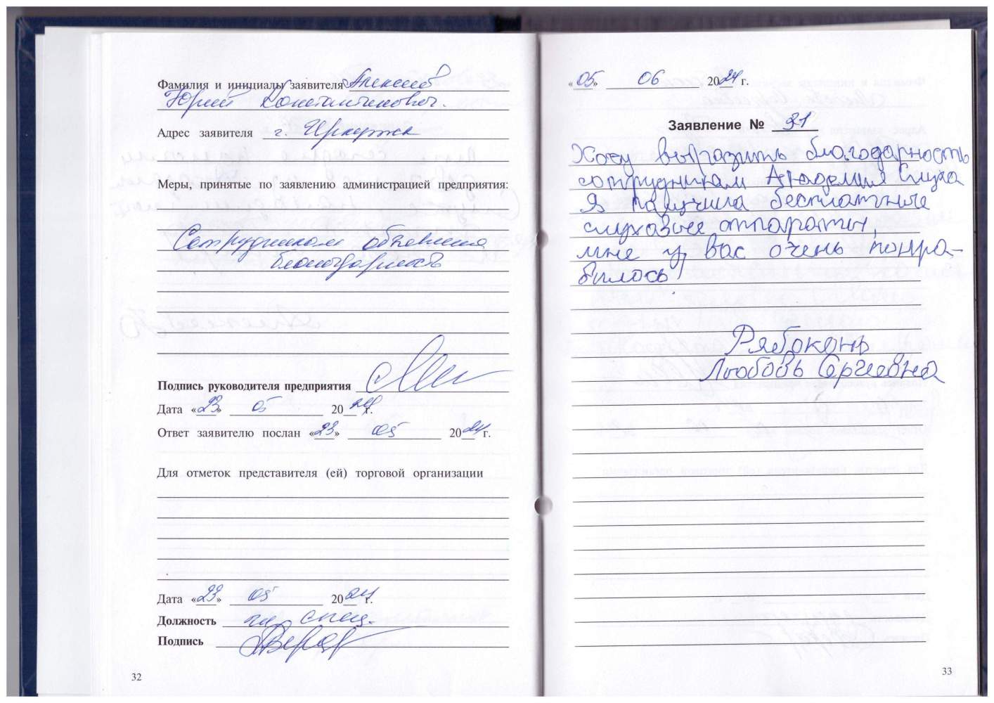 Я, Шубитидзе Людмила Александровна хочу выразить благодарность работникам Академии слуха. Очень внимательные , отзывчивые, оперативно обслужили. Спасибо огромное.