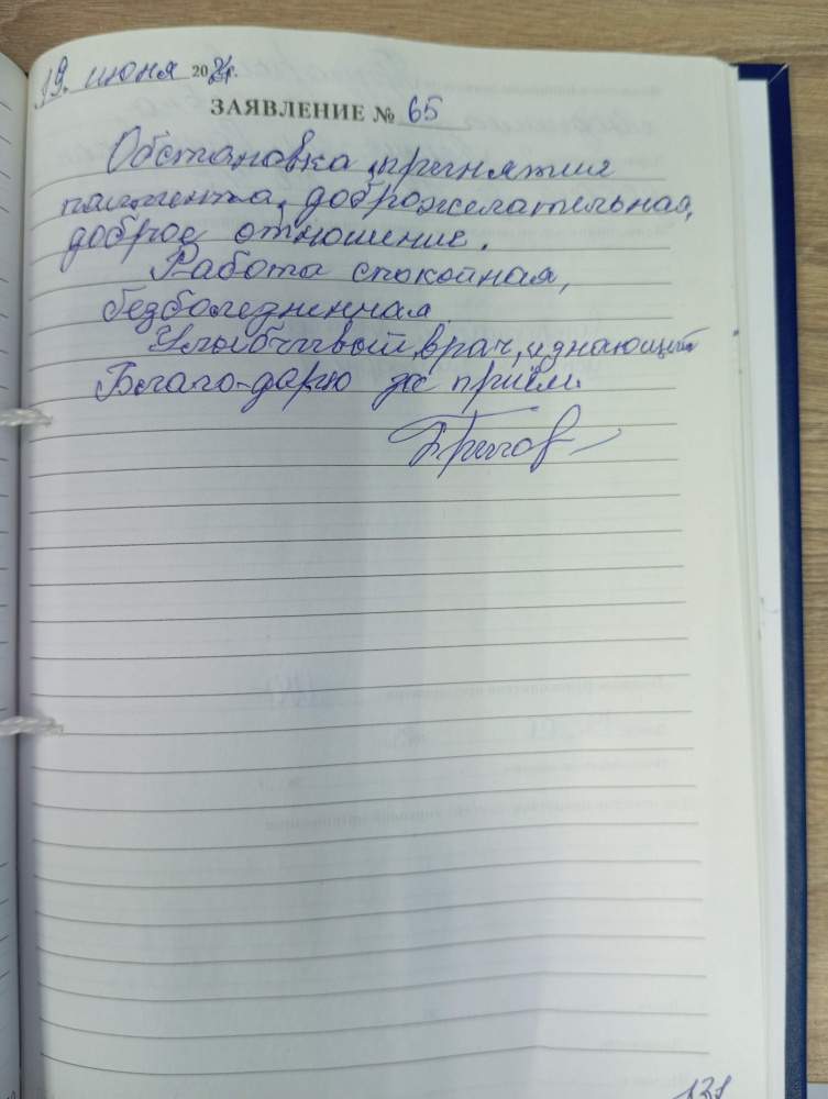 Обстановка, принятие пациента, доброжелательная, доброе отношение. Работа спокойная, безболезненная. Улыбчивый врач, знающий. Благодарю за приём.