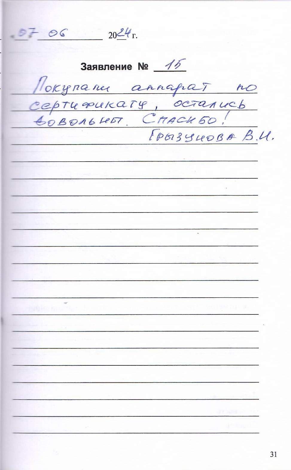 Спасибо за консультацию специалиста, за подбор аппарата, всё устраивает.