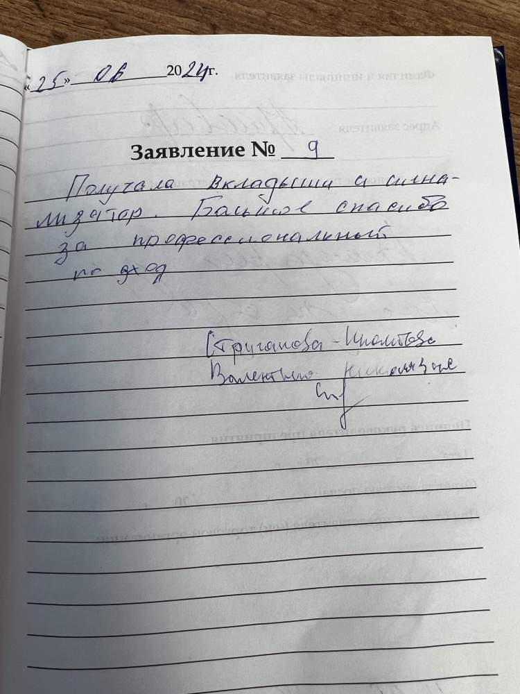 Получила вкладыши и сигнализатор . Спасибо за профессиональный подход.