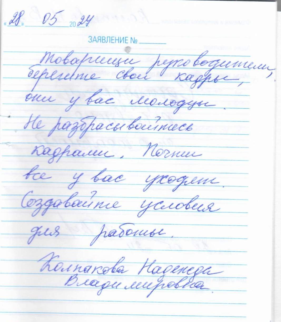 Товарищи руководители, берегите свои кадры, они у вас молодцы. Не разбрасывайтесь кадрами. Почти все у вас уходят. Создайте условия для работы.