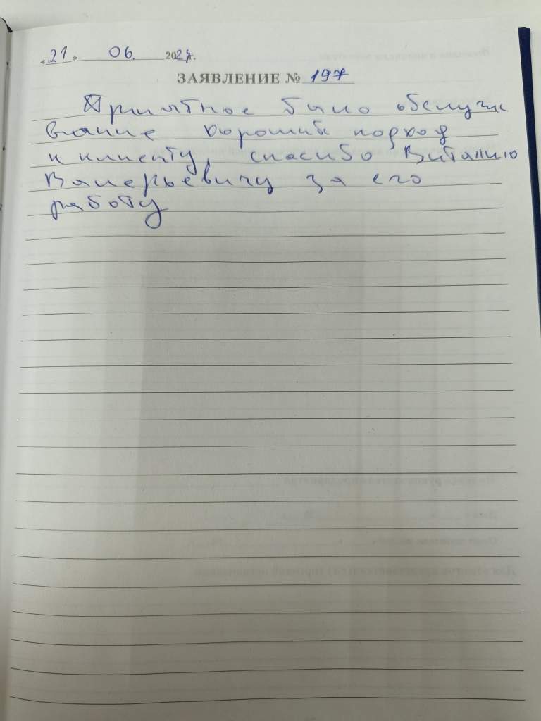 Приятное было обслуживание, хороший подход к клиенту. Спасибо Виталию Валерьевичу за его работу