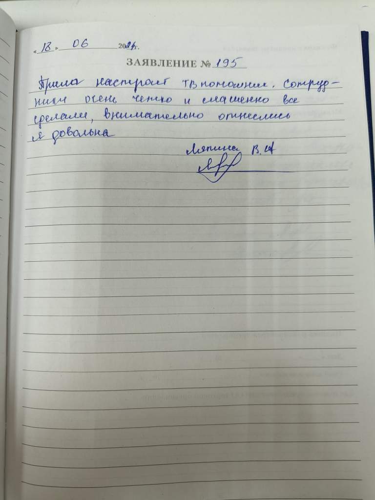Пришла настроить тв помощник. Сотрудники очень четко и слажено все сделали, внимательно отнеслись , я довольна.