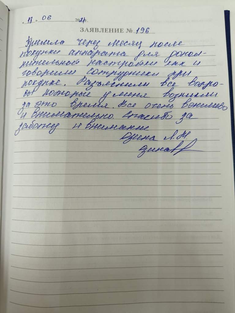 Пришла через месяц после покупки аппарата для дополнительной поднастройки как и говорили сотрудники при покупке. Разъяснили все вопросы которые у меня возникли за это время. Все очень вежливо и внимательно. Спасибо за заботу и внимание.