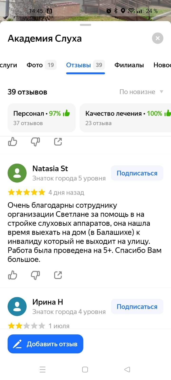 Спасибо " Академии слуха" за такой красивый центр в городе Златоусте. Чисто, уютно, внимательный персонал.